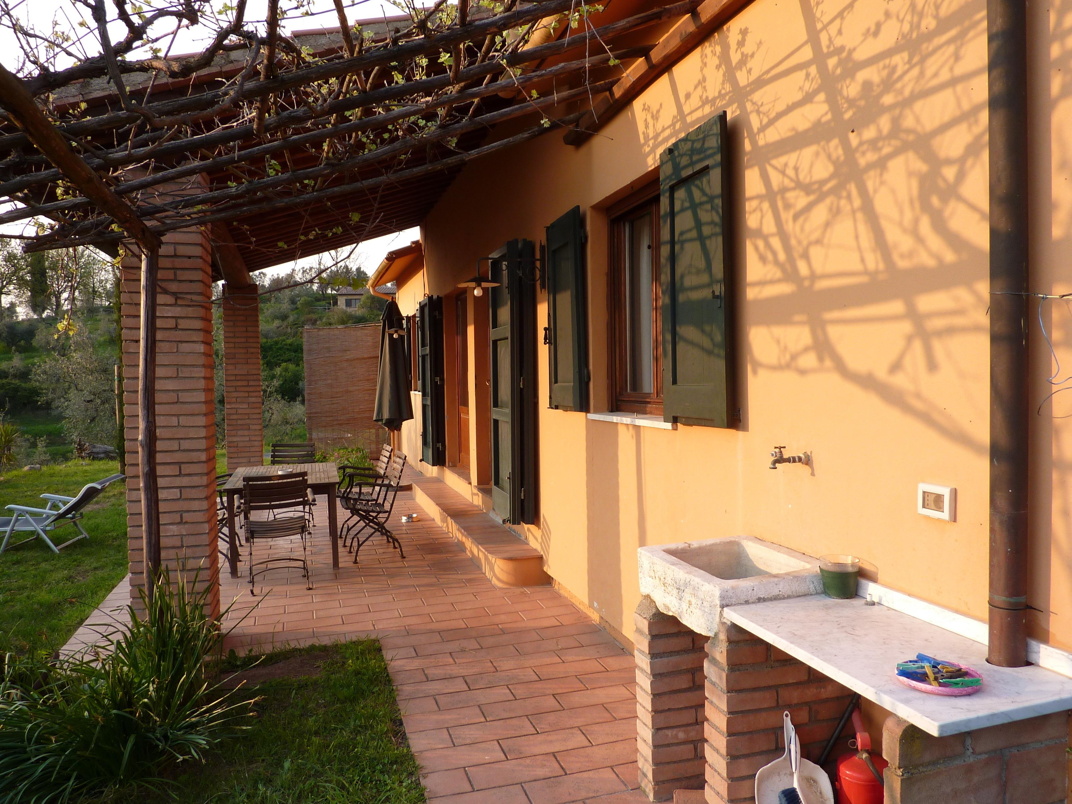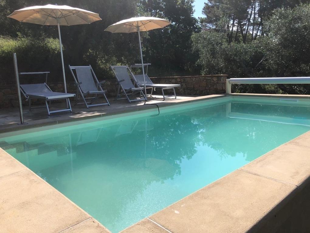 Die Terrasse wurde mit einem Kastanienholz-Dachstuhl mit alten Mezzane gedeckt. Von dieser Terrasse aus hat man einen herrlichen Blick aufs Meer sowie die Inseln Capraia und Korsika (bei klarer Sicht), und kann die Sonnenuntergänge genießen.