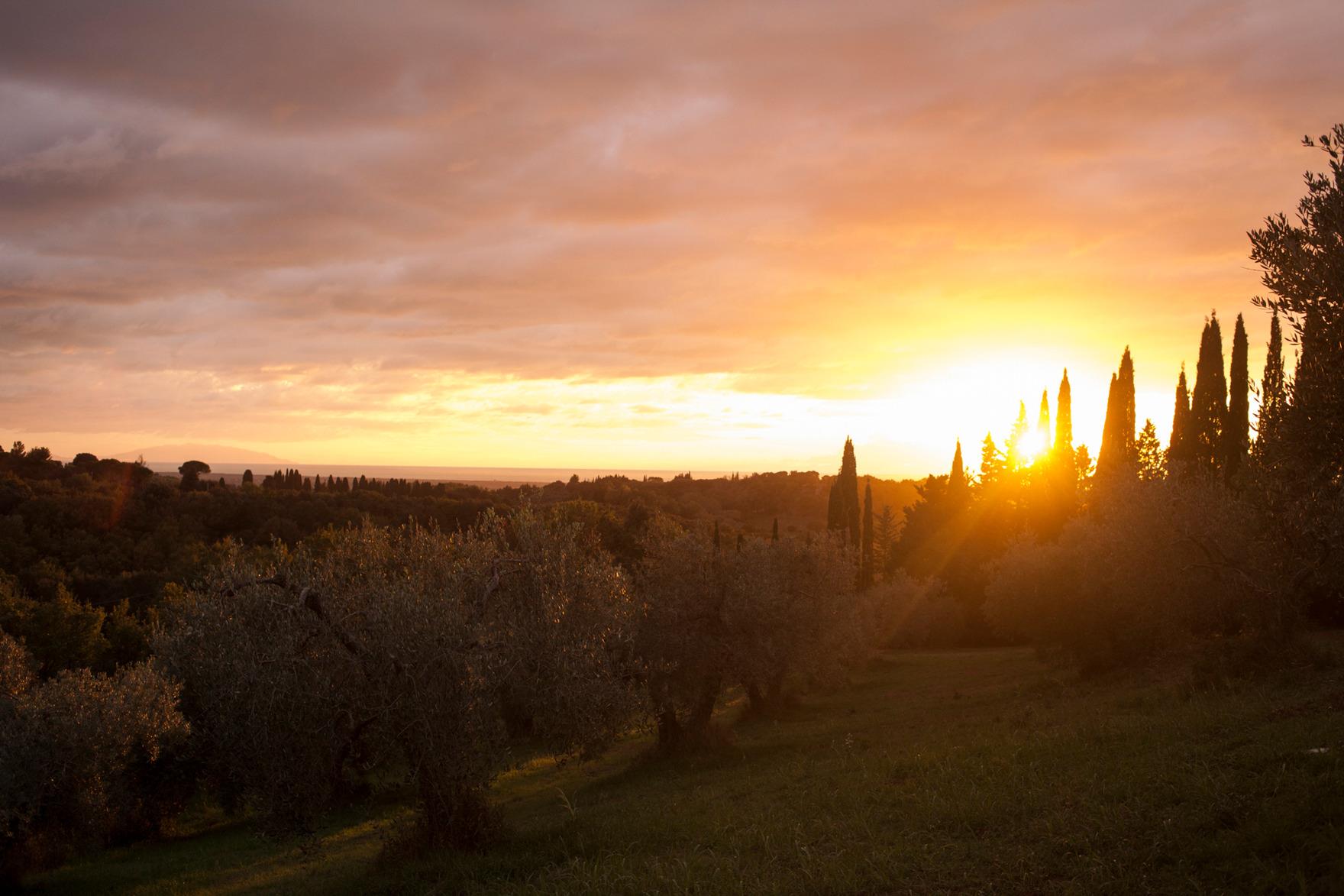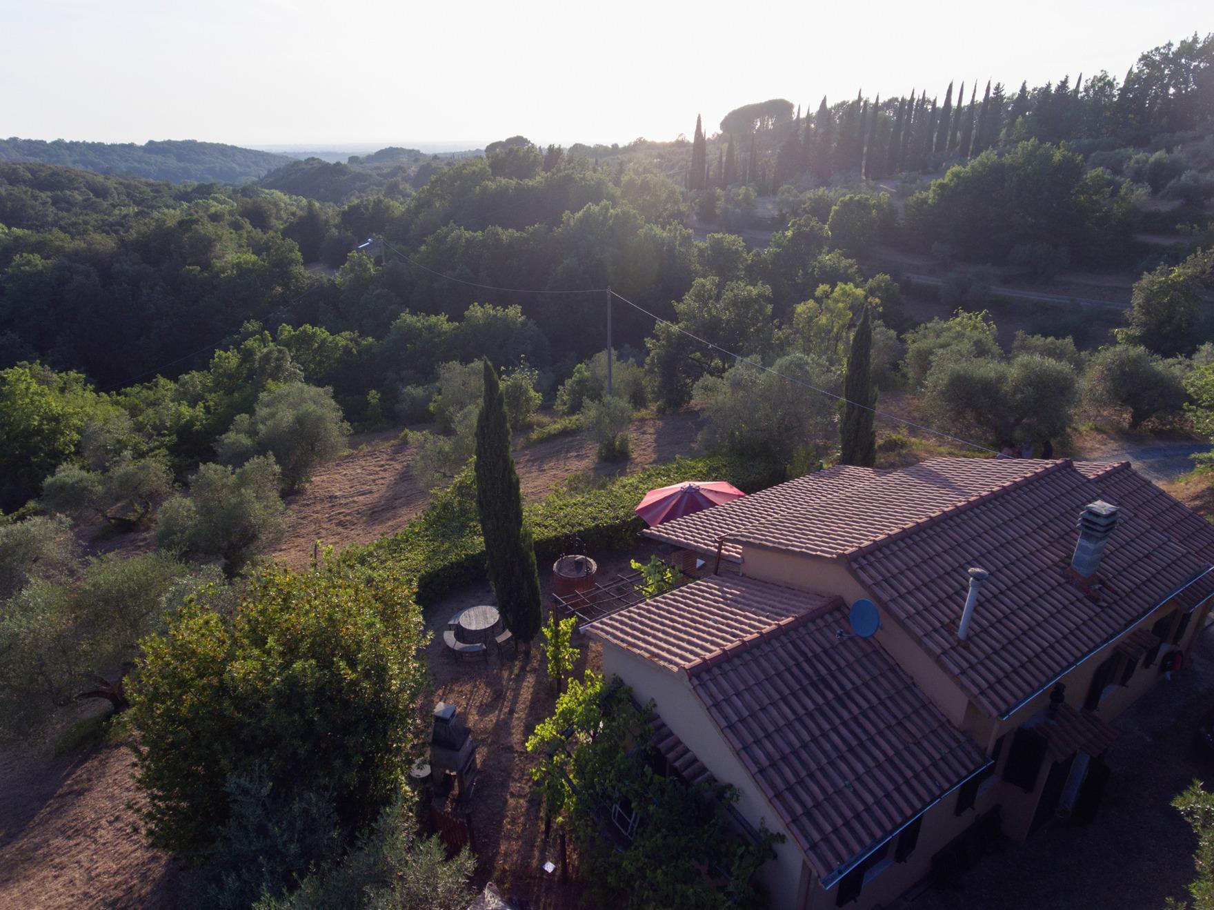 In der Nähe der toskanischen Etruskerküste, nur 7 km vom Meer entfernt, steht in einem Hain mit 300 Jahre alten Olivenbäumen das "Podere Mulino Vecchio". Diese Olivenbäume stehen auf vor hunderten von Jahren mit Trockenmauern terrassierten Gelände zusammen mit Feigenbäumen, Mandelbäumen und Obstbäumen. Das Haus wurde mit alten Baumaterialien aufwändig renoviert. Auf die Travi und Travicelli (Pfetten und Sparren) wurden 200 Jahre alte handgefertigte Mezzane (Ziegel aus Terracotta) aufgebracht. Zusammen mit hartgebrannten toskanischen Mezzane für den Fußboden ergibt dies eine überaus gemütliche Atmosphäre.