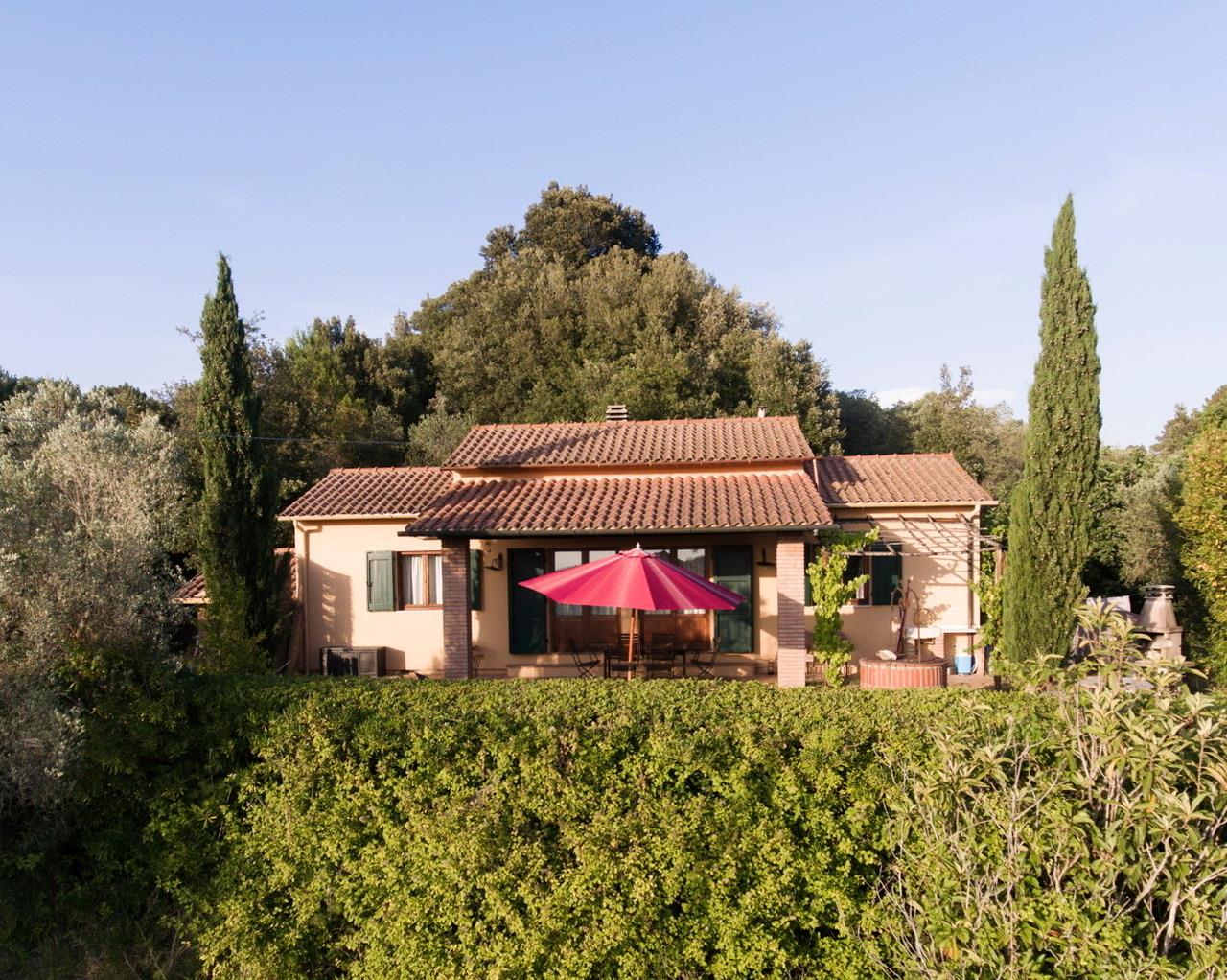 Bei Guardistallo. Entfernungen: Cecina 7 km, Bolgheri mit der schönsten Zypressenalle Italiens 10 km, Volterra 30 km, Pisa 45 km, Lucca 55 km, San Gimignano 55 km, Siena 80 km, Florenz 100 km.