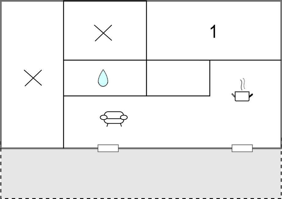 Opholdsstue/køkken - 2 Sovepladser. (Sofa, madras eller lignende).