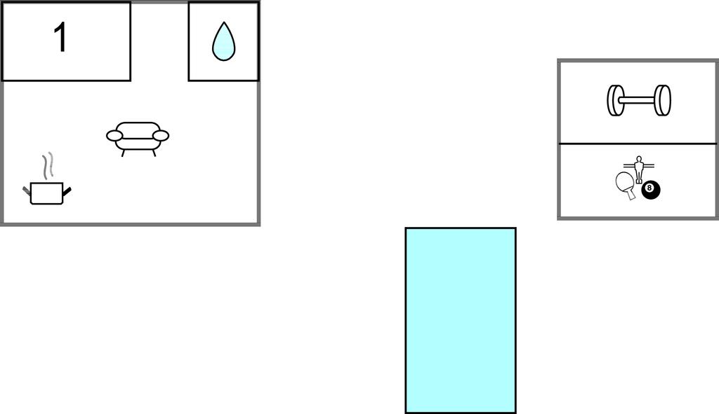 Opholdsstue/køkken - 2 Sovepladser. (Sofa, madras eller lignende).