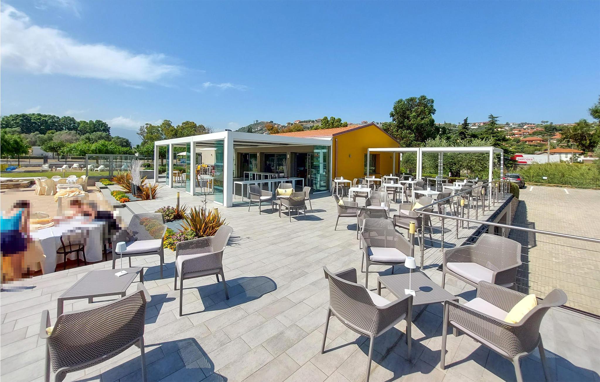 Den private have er også flot og indbydende i stil med en park, hvor der er et stort poolområde, hvor I kan få en frisk dukkert i de hede middagstimer. Der er desuden to områder til børn og et dejligt udvalg af fritidsaktiviteter.