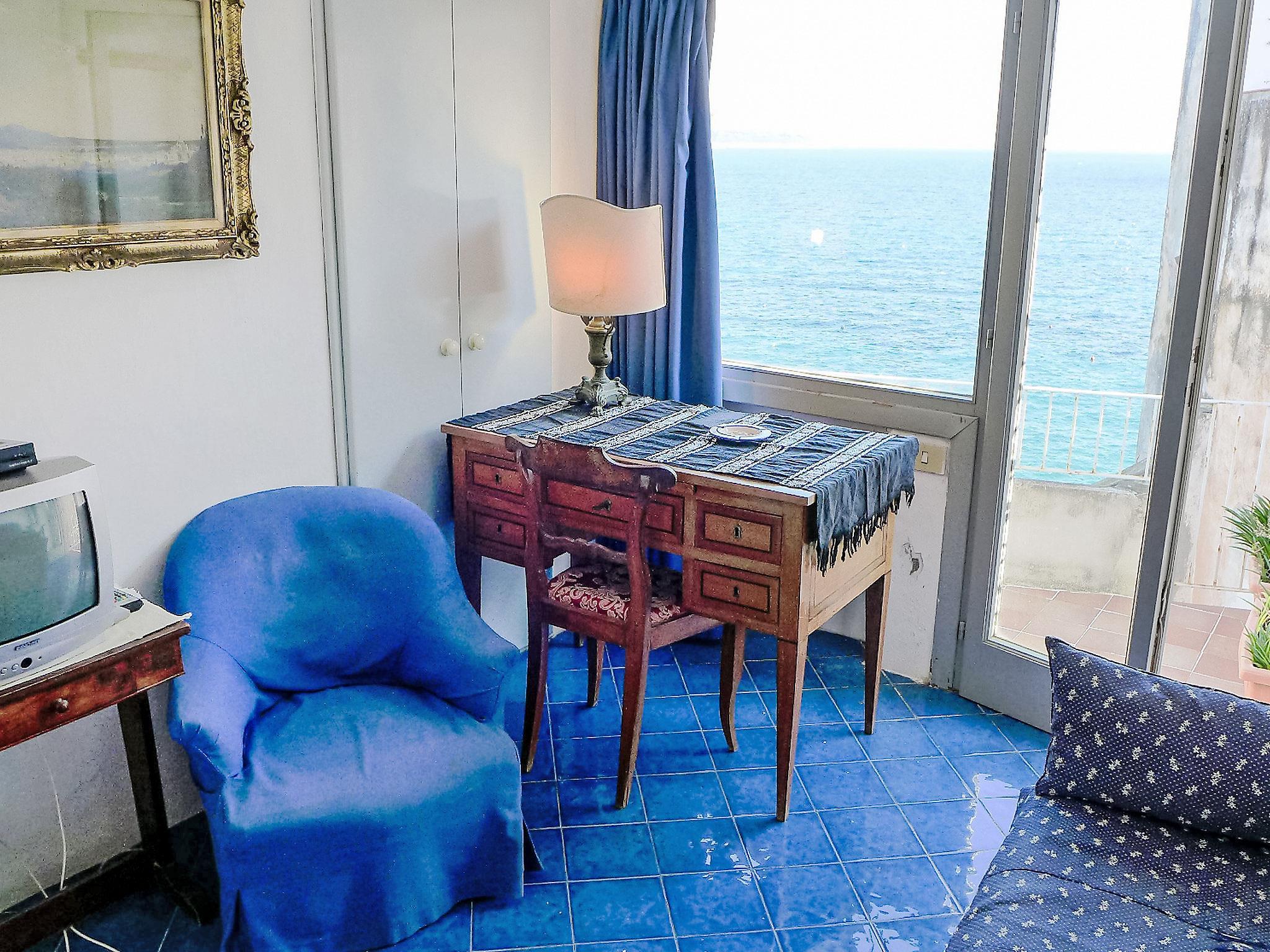 2-room apartment 40 m2 on 3rd floor. Simple and comfortable furnishings: living/dining room with 1 double sofabed and open-hearth fireplace (only for decoration), TV and air conditioning. Exit to the terrace. 1 double bedroom with panoramic window with air conditioning. Kitchenette (4 hot plates, oven, kettle, microwave) with dining table. Shower/bidet/WC. Air-conditioning, forced-air heating. 2 small terraces 15 m2. Terrace furniture. Marvellous view of the sea, the town and Aragonese Castle. Facilities: washing machine. Internet (WiFi, free). Please note: suitable for families. Fridge without freezer. Private mooring. The kitchenette is 2 steps down. IT063037C2FMKVWUNJ