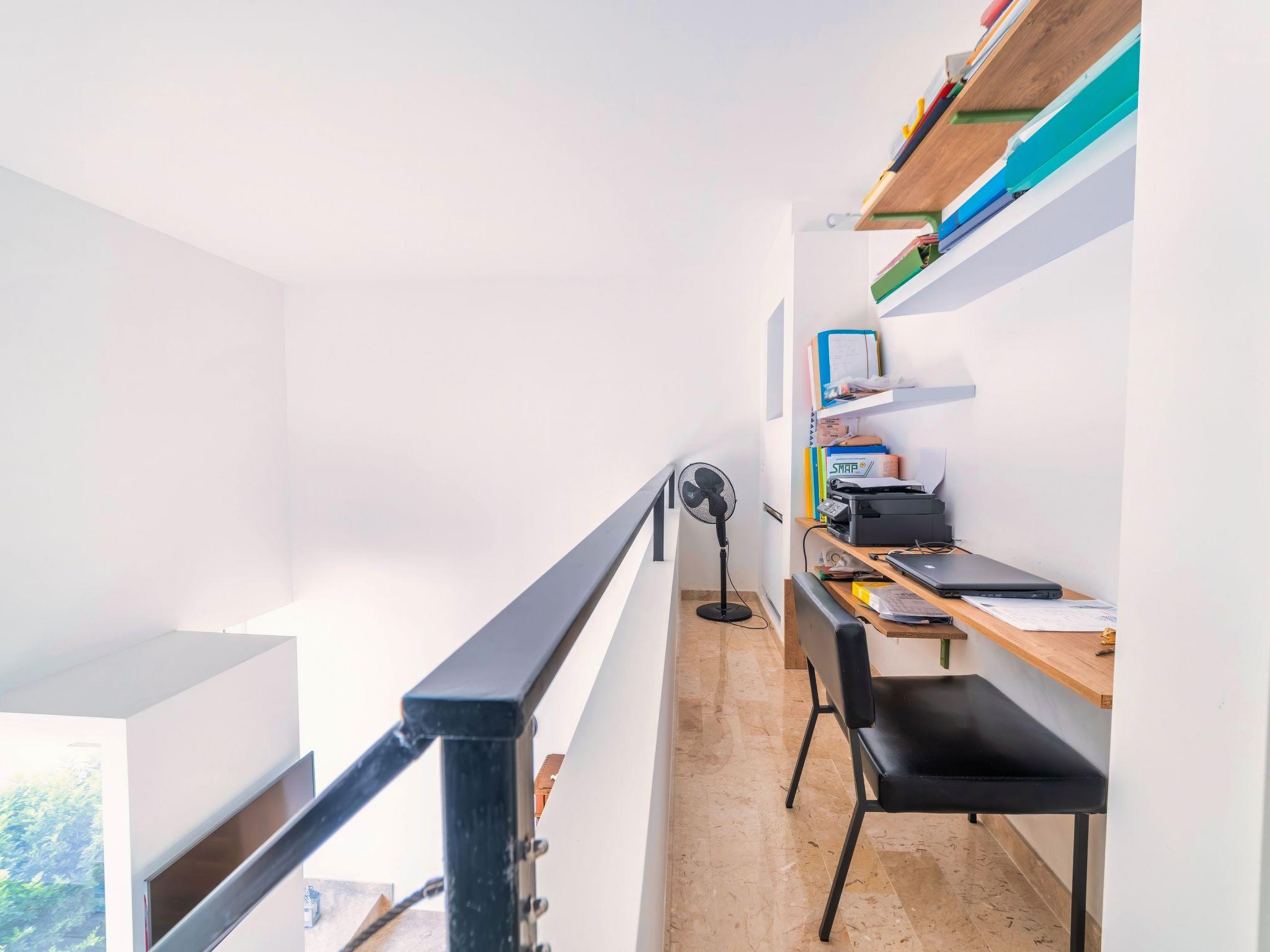 The very elegant property has 3 spacious double bedrooms, one of which is en-suite. One bedroom shows a living room and a double bed in the loft. The open-air internal courtyard, hosts swimming pool (10x3) and opens on all sides of the house with spectacular windows.