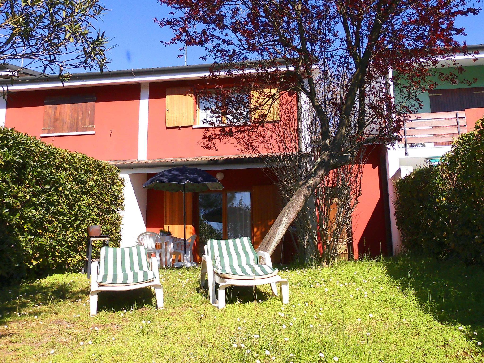 • Ein gepflegter, halb geschlossener Garten mit Gartenmöbel