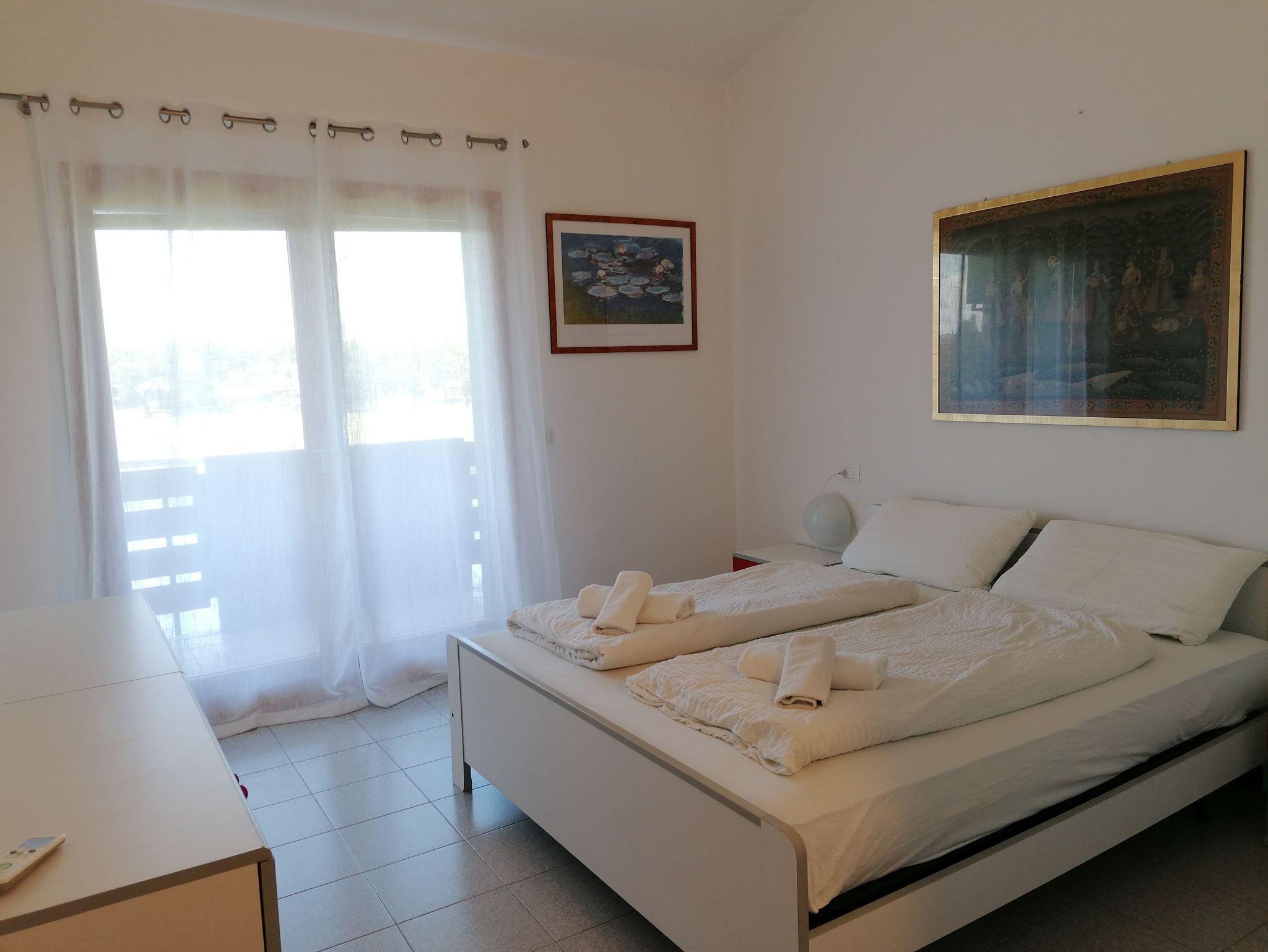 • Ein Schlafzimmer mit Doppelbett und Balkon