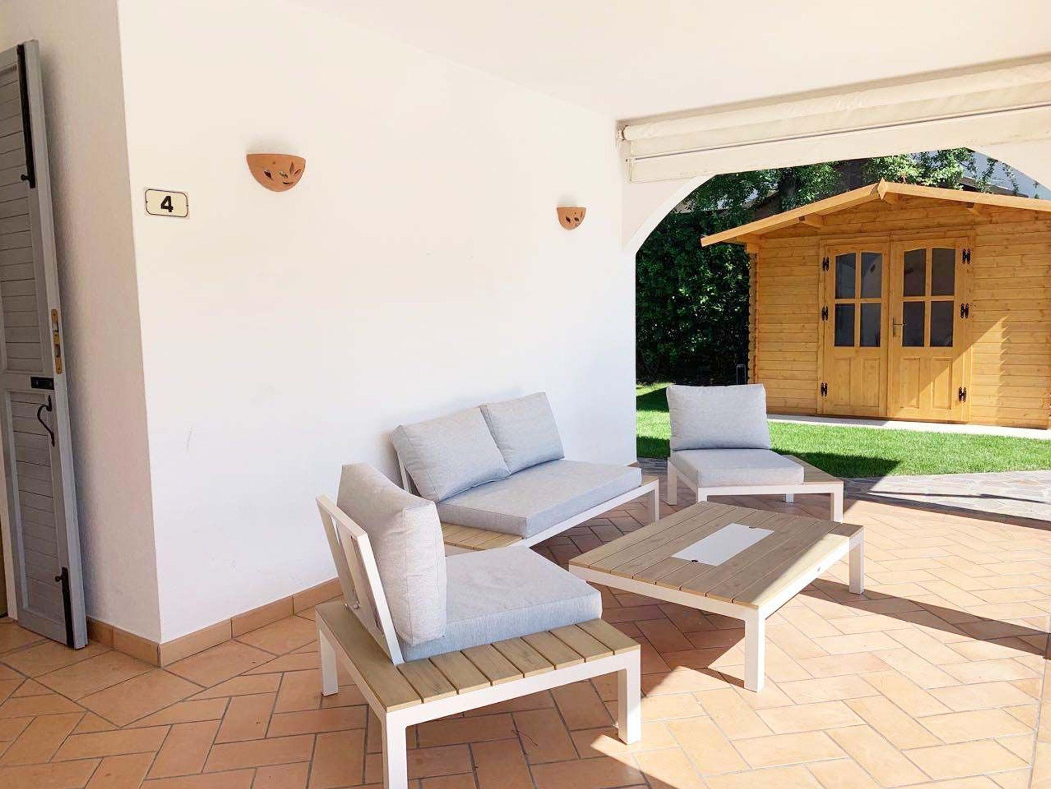 Auf der Rückseite des Hauses eine zweite überdachte Terrasse mit Möbeln für 6 Personen
