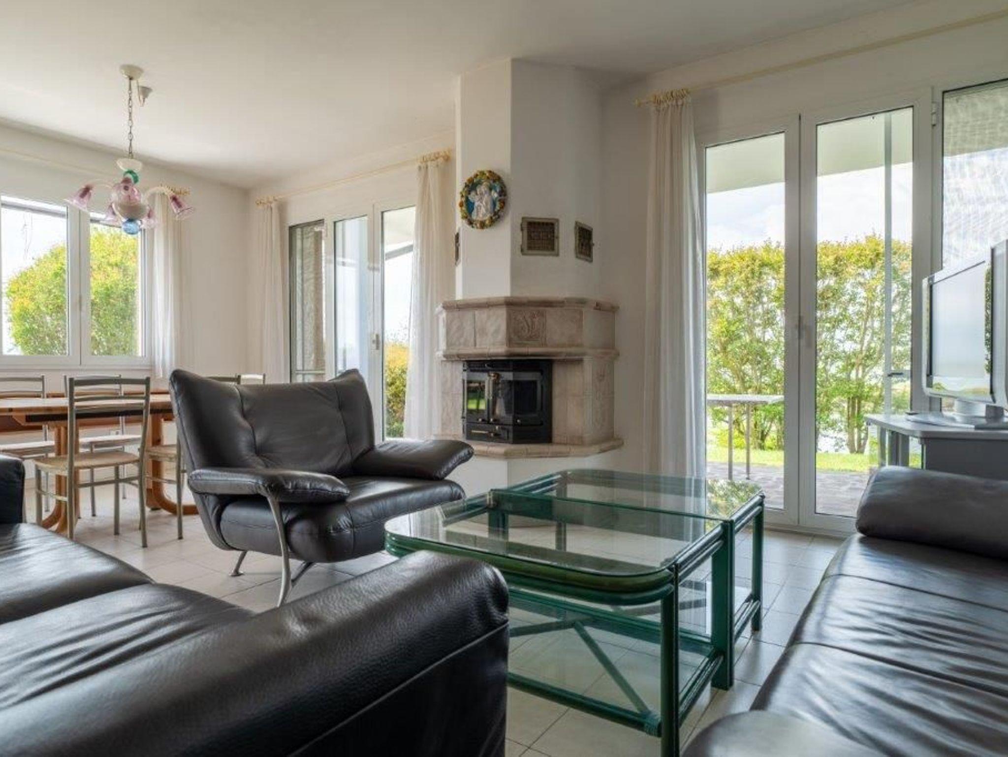 • Ein schöner Wohnraum mit: Sat.TV, Kamin, Esstisch, Blick auf den Hauptfjord und Klimaanlage