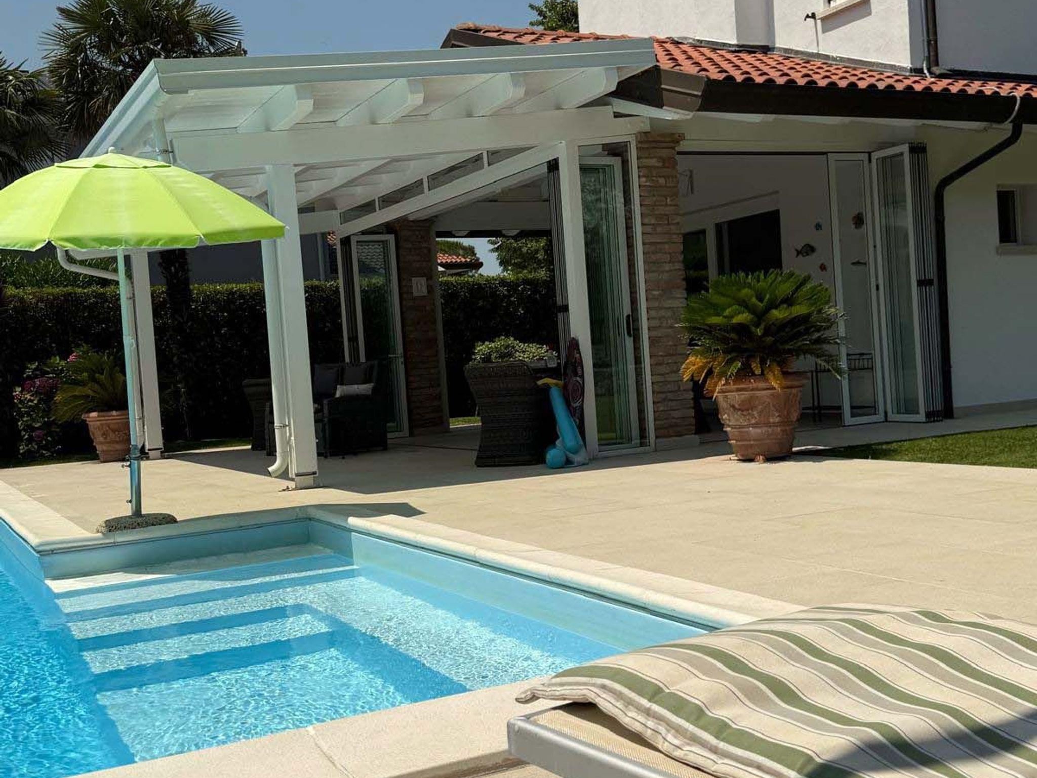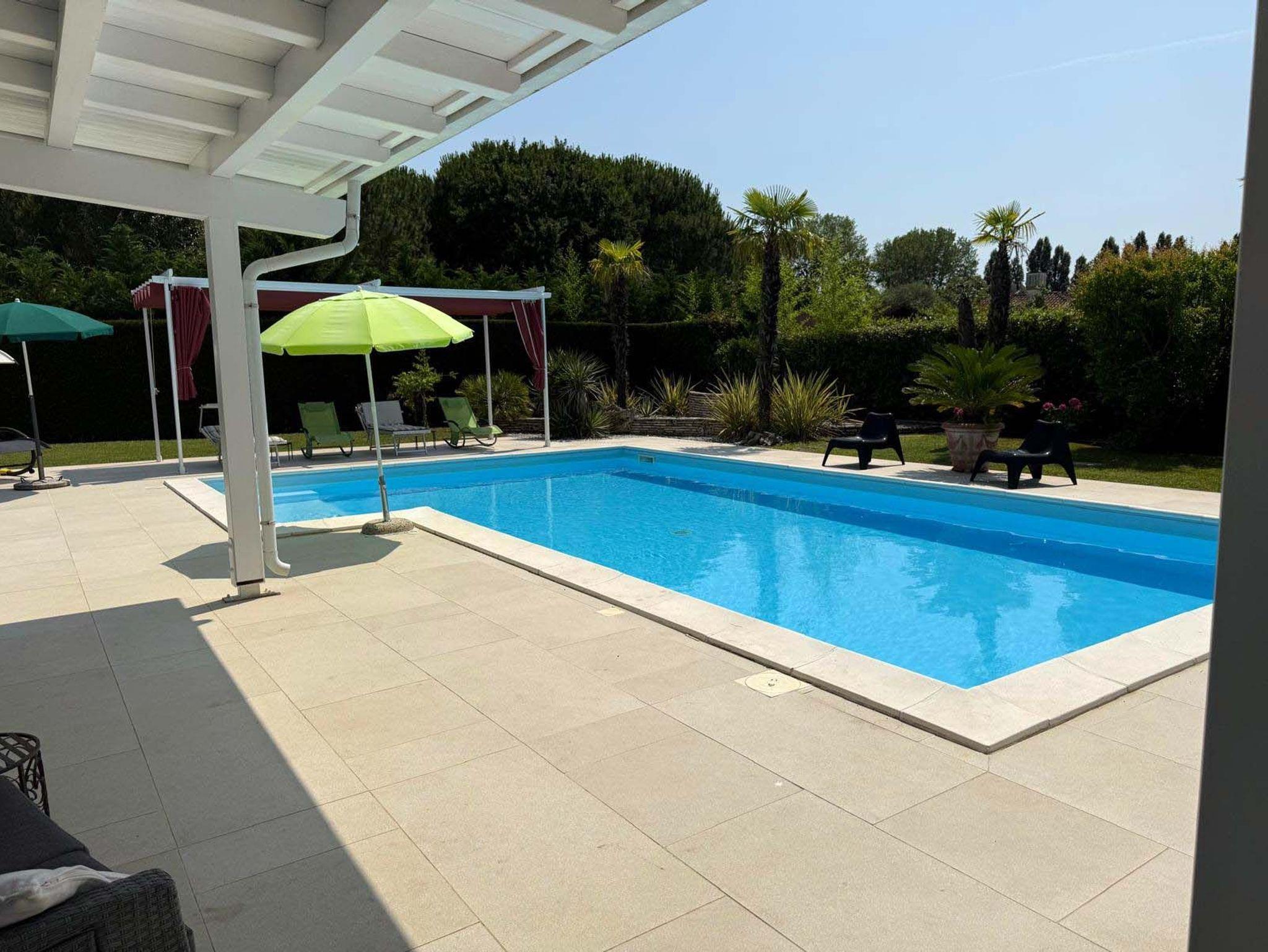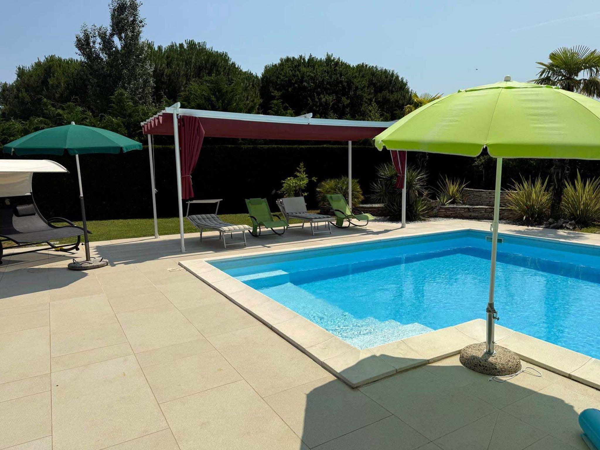 Einzelvilla mit 3 Schlafzimmern, 2 Bädern und Gäste-WC, sowie großer Wohnküche mit Abstellkammer. 1000m2 Grundstück mit Pool und eigenem Carport.
