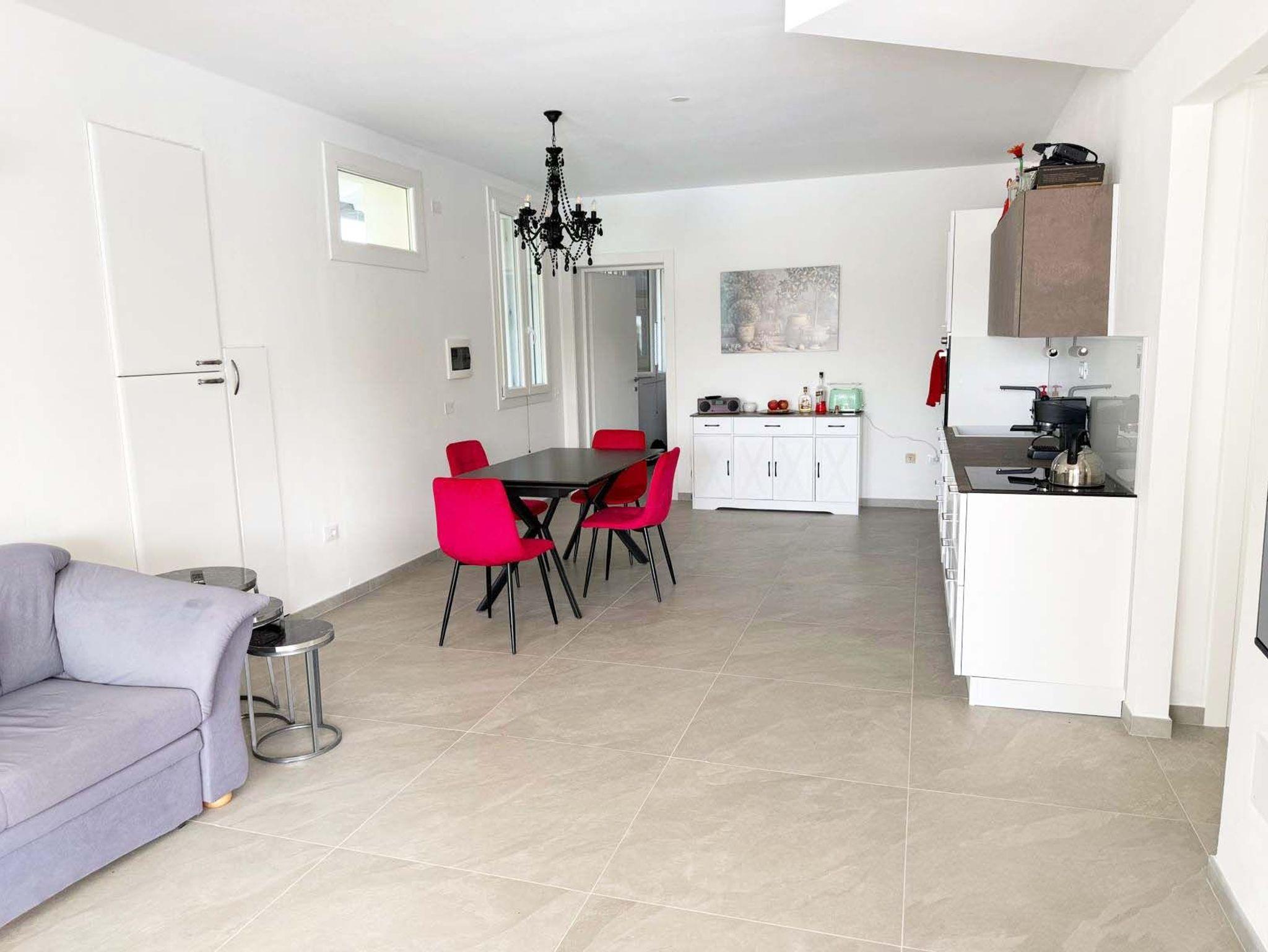 • Großes Wohnzimmer mit Couch und Led-Tv, Wi-Fi, Digitalradio mit Internetanschluss und Bluetooth. Esstisch mit 4 Stühlen