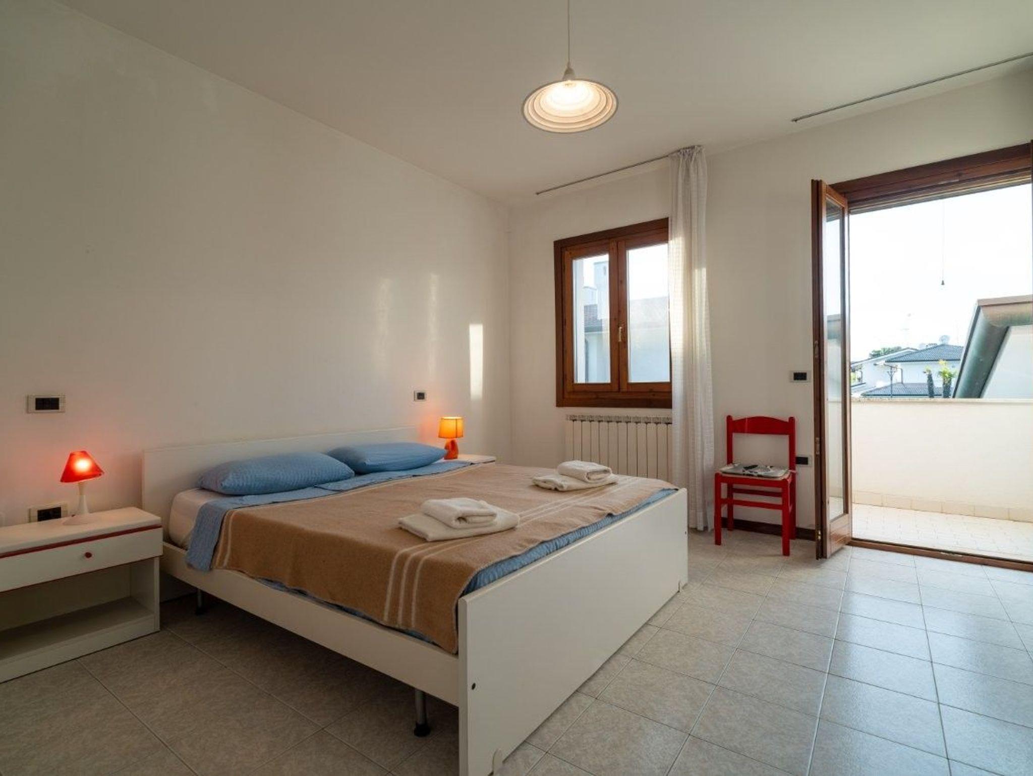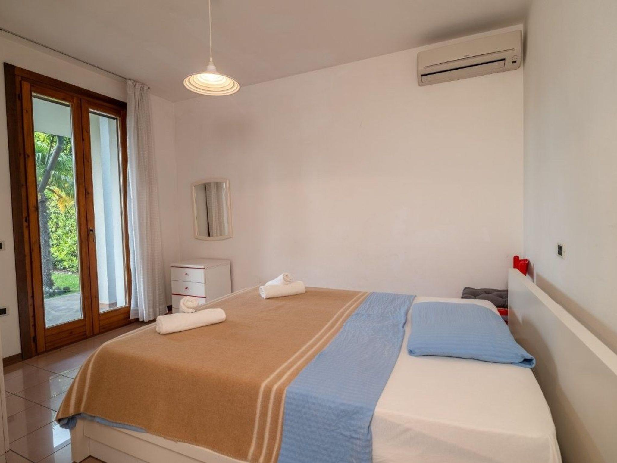 • Ein Schlafzimmer mit Doppelbett, Klimaanlage und Balkon