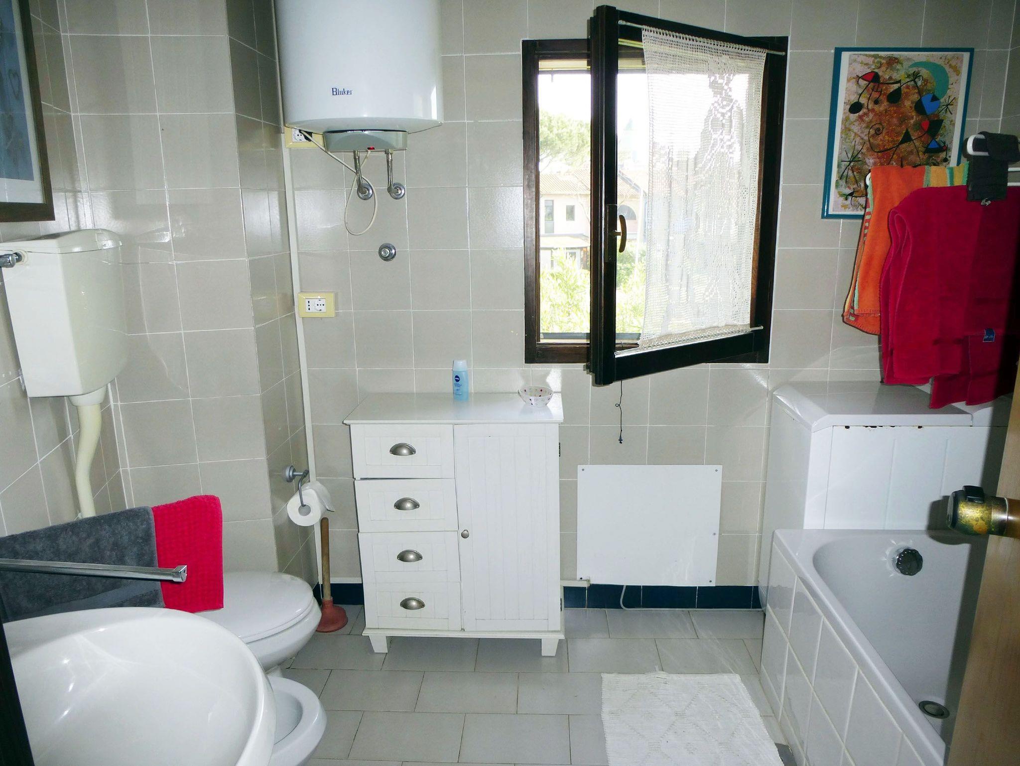 • Ein Bad mit Dusche, Bidet, Waschmaschine und Wc