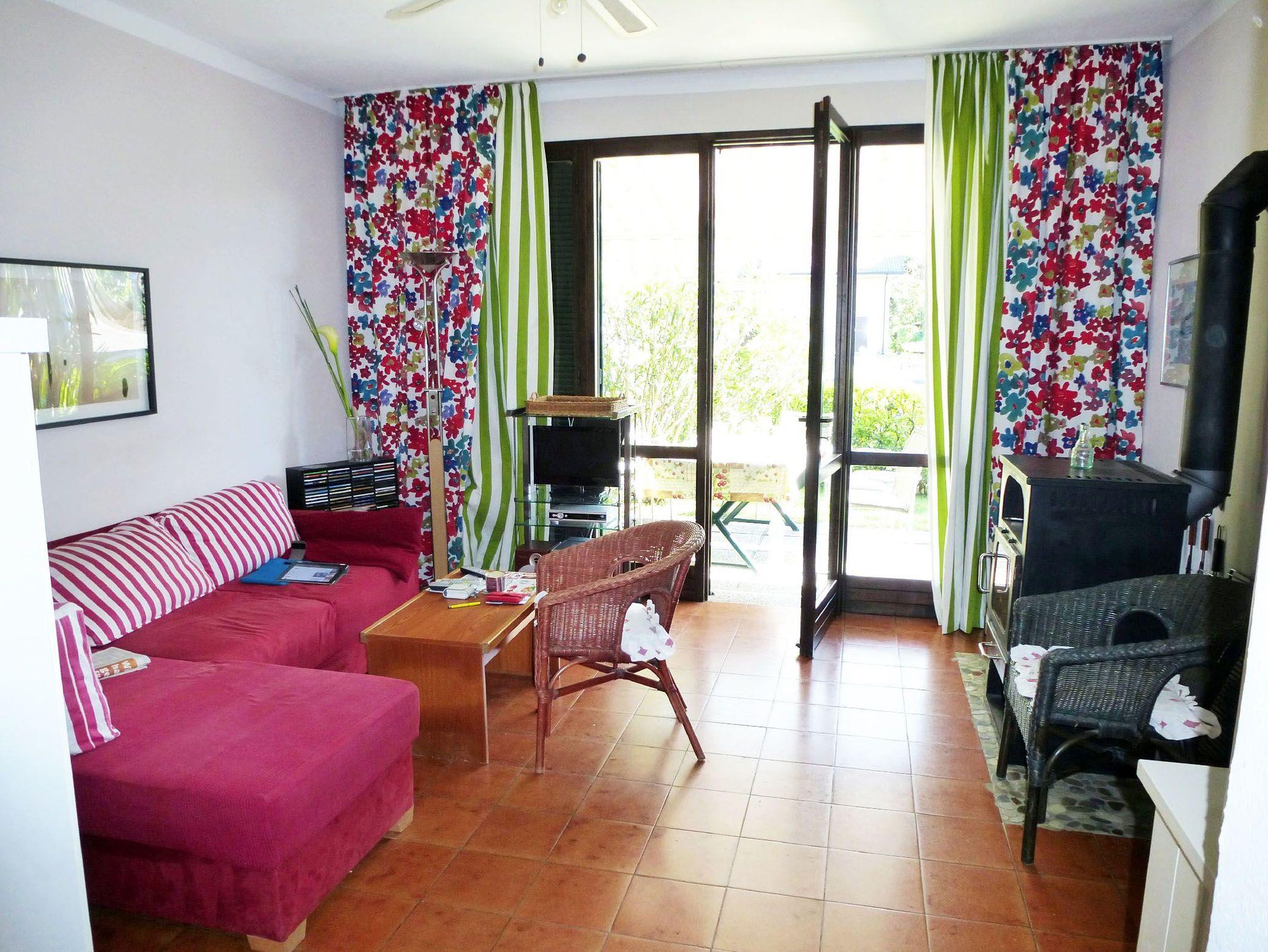 • Schöner Wohnraum mit Schlafsofa, Klimaanlage, Ventilator und Sat-Tv, kleinen Kamin