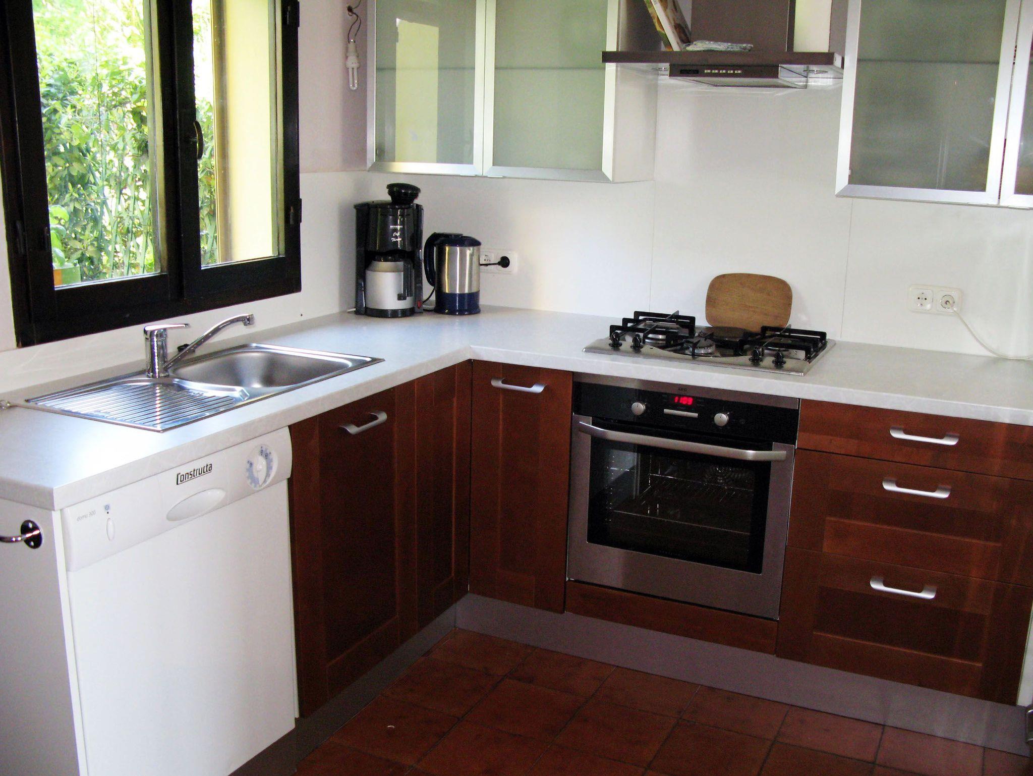 • Gut eingerichtete kleine Küche mit Spülmaschine, Mikrowelle, Ofen, Wasserkocher, Kühlschrank, Gefriechfach und Kaffeemaschine