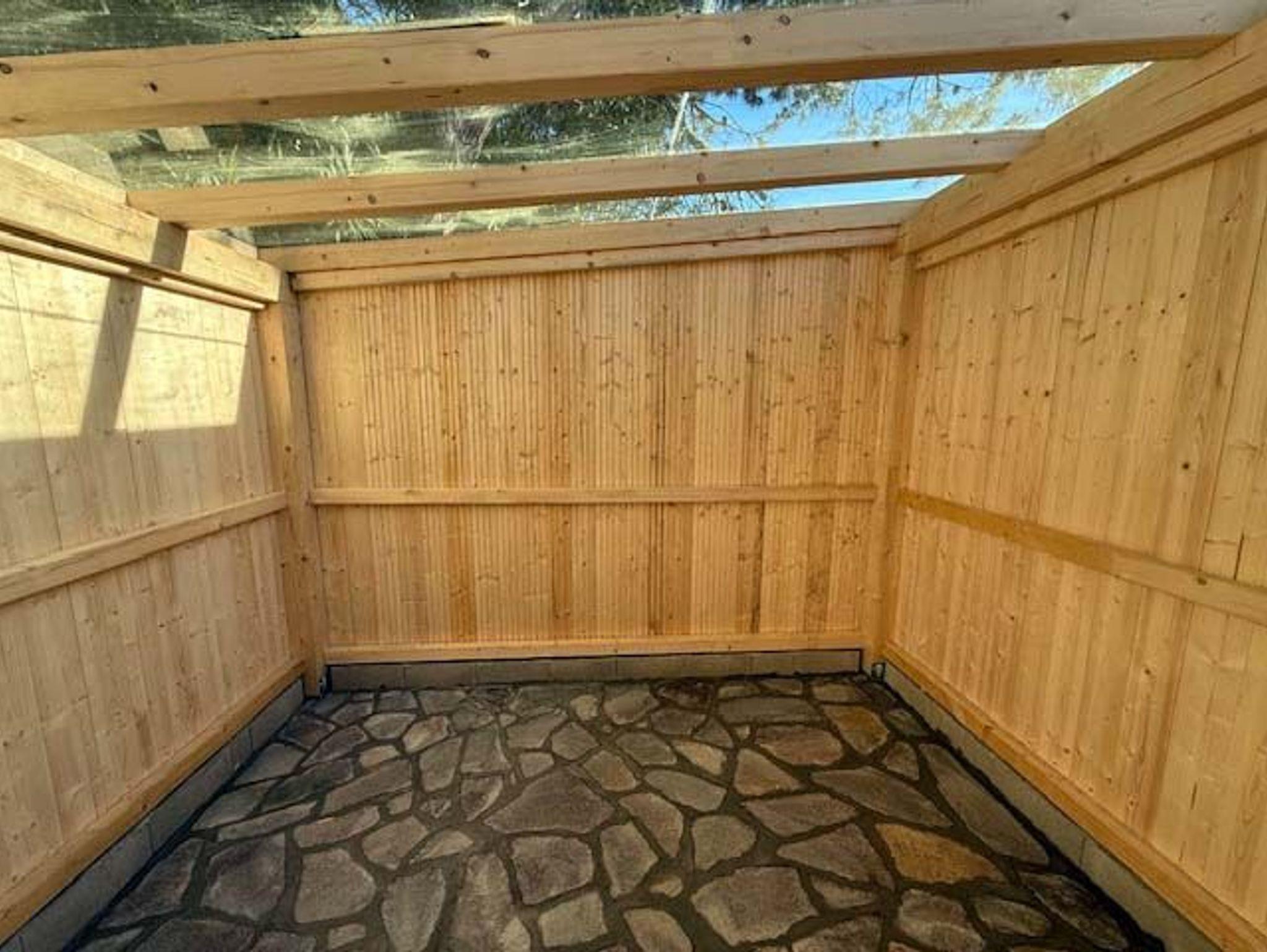 • Sehr schöner geschlossener Garten mit überdachter Terrasse, Gartenmöbel, Sonnenliegen, Außengrill, Außendusche und Zugang zum Fjord...