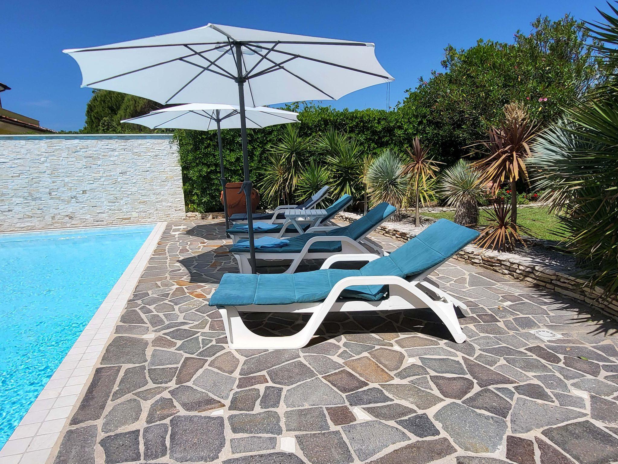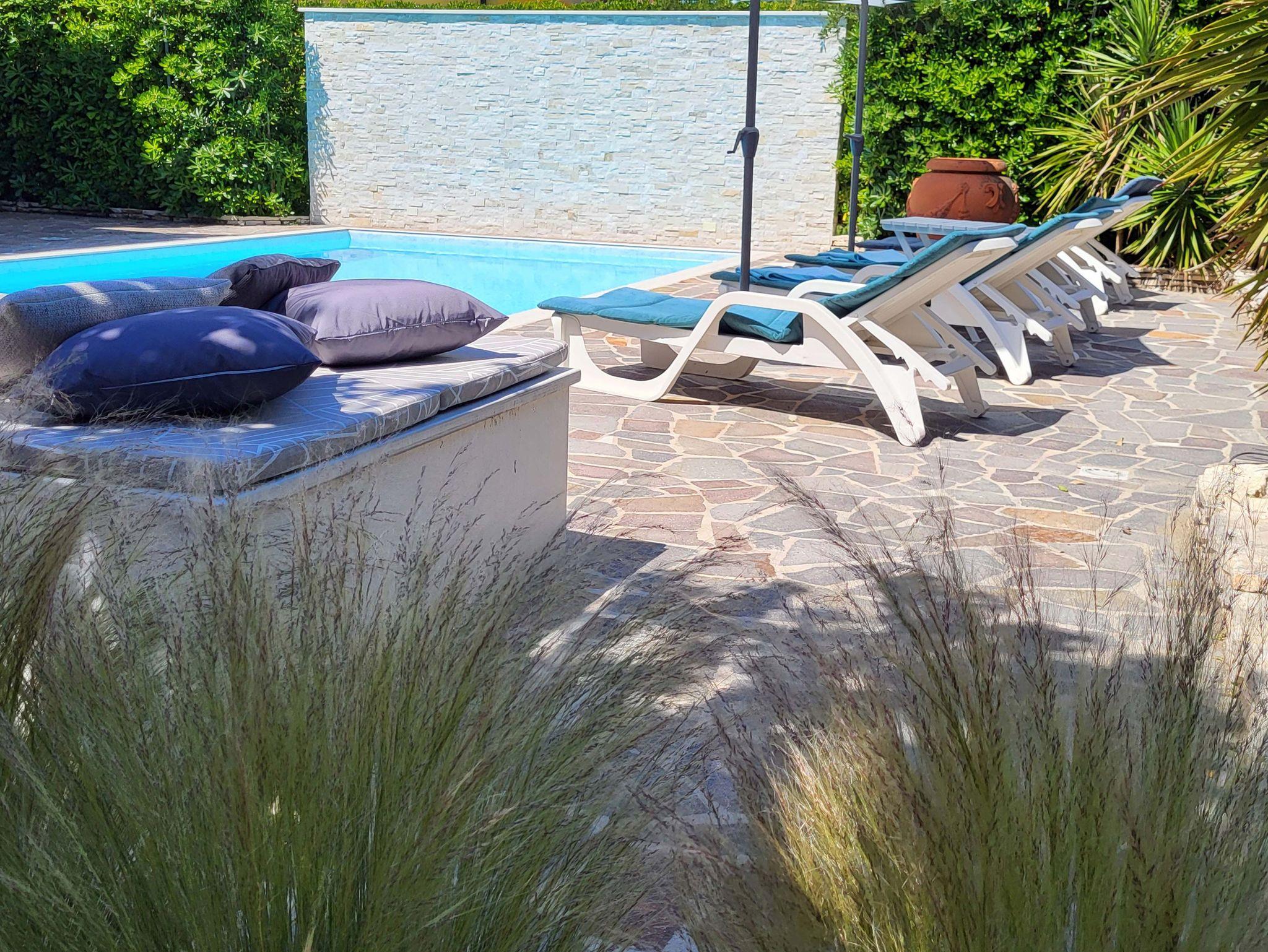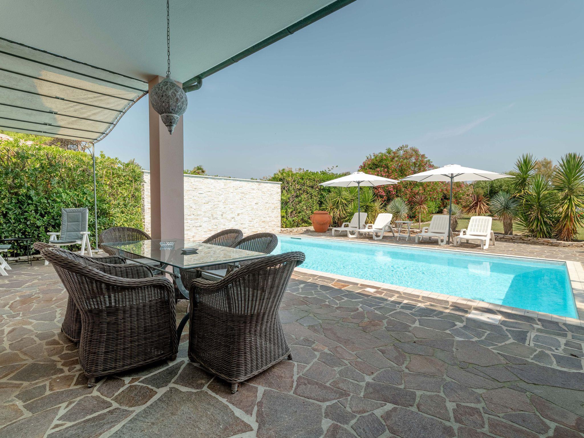 • Großer, gepflegter Garten mit sehr schönem Pool, Außendusche, Sonnenliegen, Sonnenschirmen sowie zahlreichen Sitz- und Liegemöglichkeiten mit sehr viel Privatsphäre