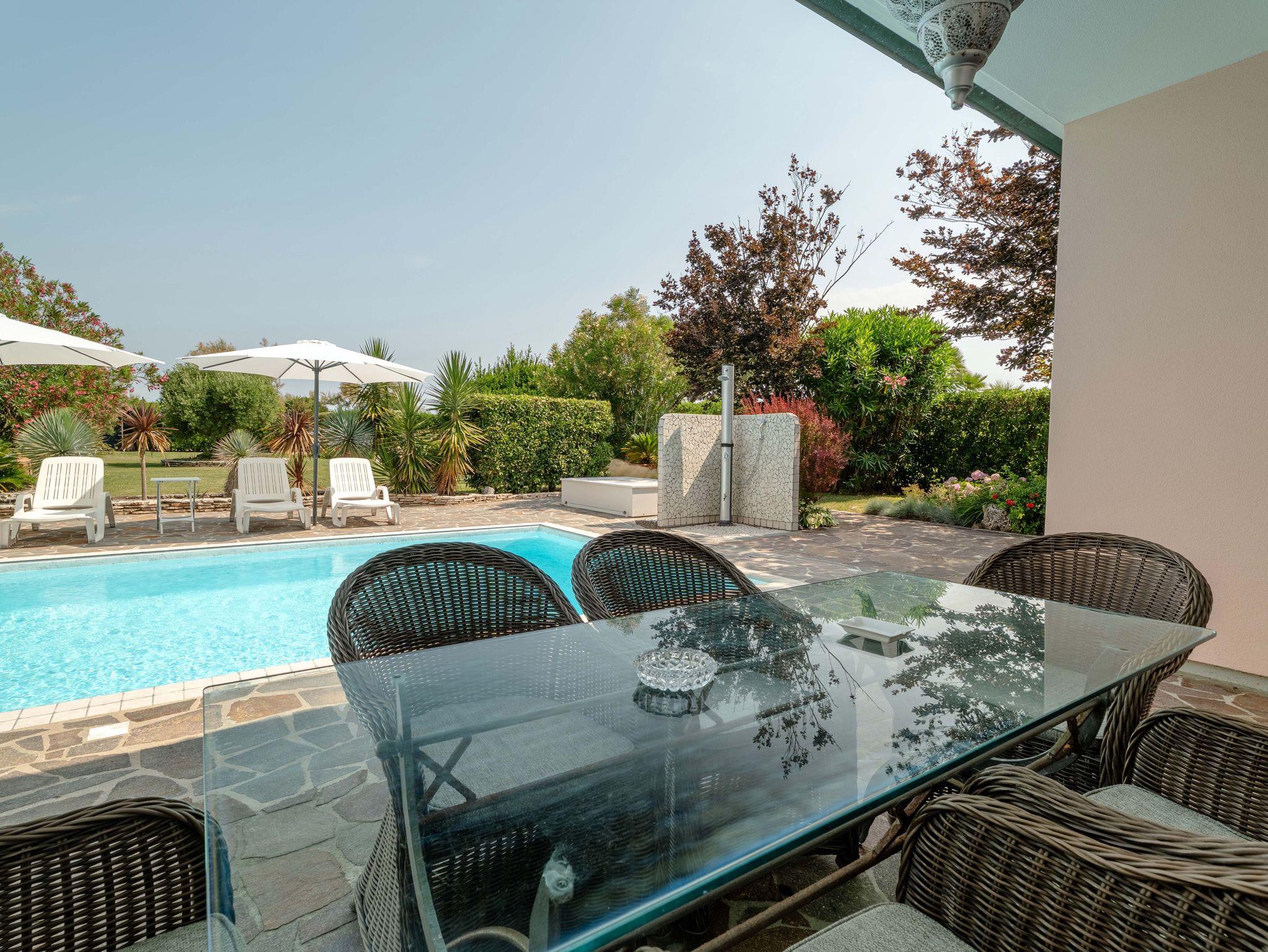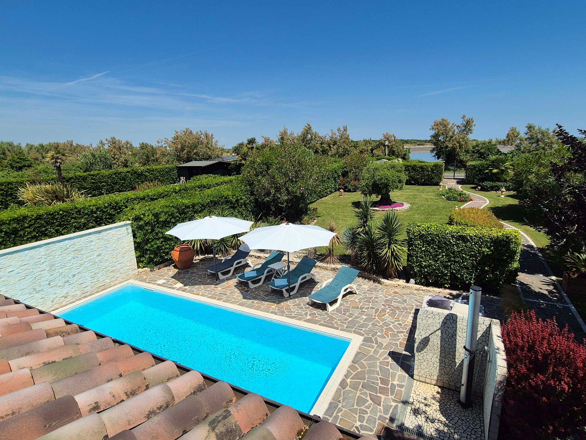 Pool, Fliegengitter, Waschmaschine, Spülmaschine, Klimaanlagen, WLAN, TV, hauseigener Badesteg sowie die Albarella Gold Card für freien Zugang zu Natur-, Kultur- und Sportevents bzw. -einrichtungen (z. B. Schwimmbäder im Centro Sportivo, komplettes Animationsprogramm) sowie zur freien Nutzung der Inselbahn.