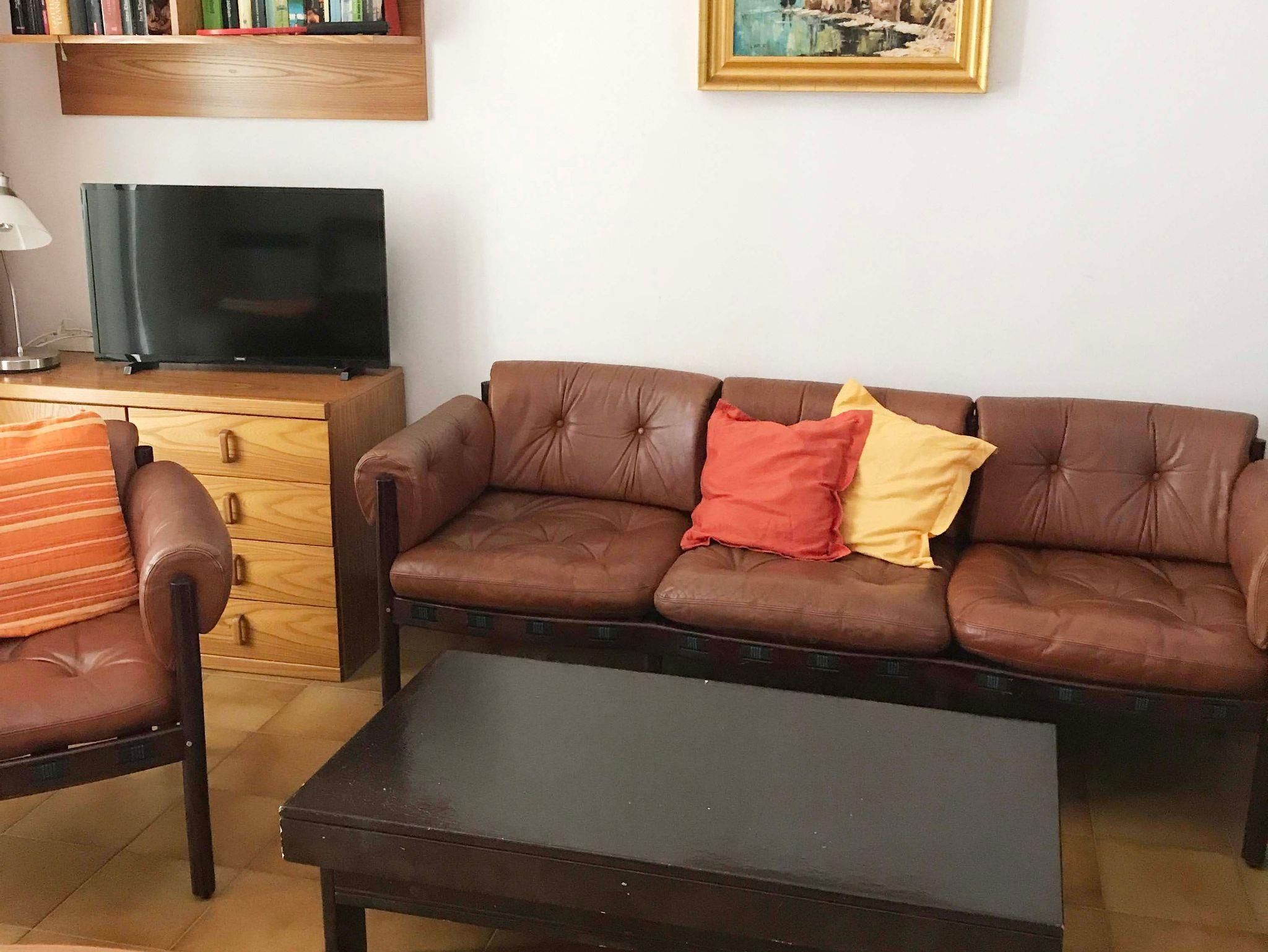 • Wohnzimmer mit Ledersofa, offener Kamin und Sat Tv