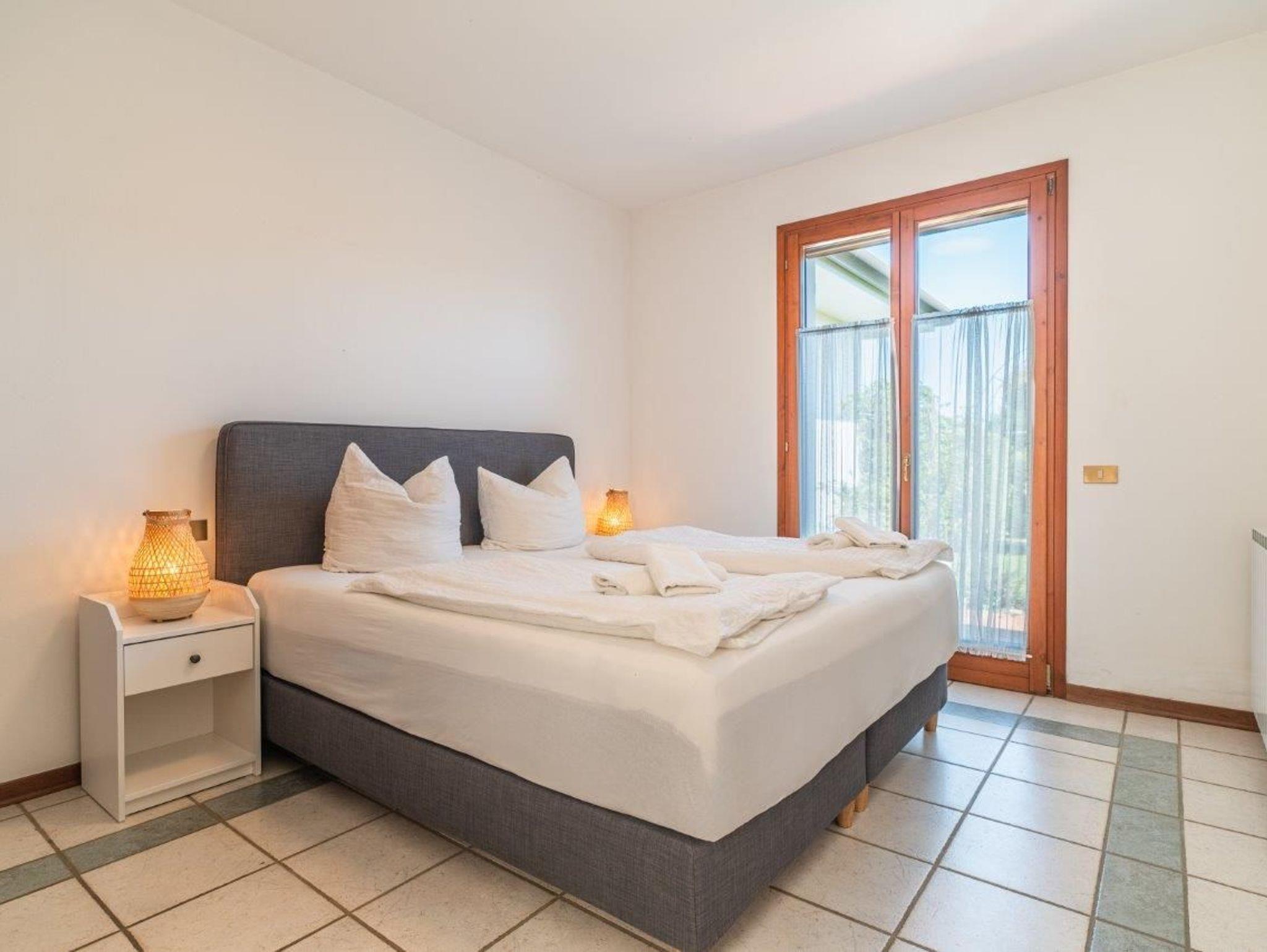 • Ein Schlafzimmer mit einem Doppelbett