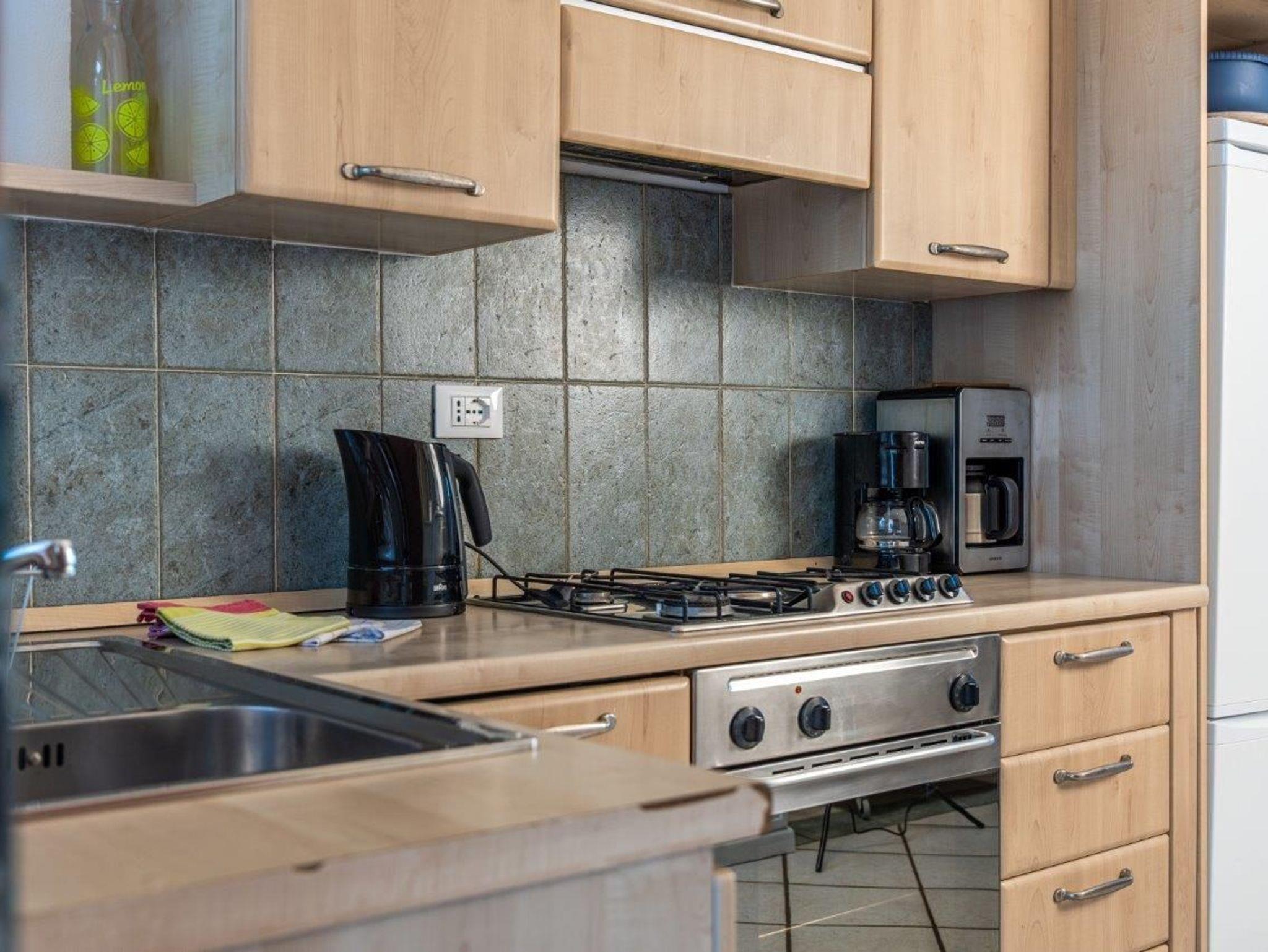 • Schöne Küche mit kleinem Backofen, Spülmaschine, Kaffeemaschine, Kühlschrank mit Gefrierfach, Wasserkocher und Microwelle