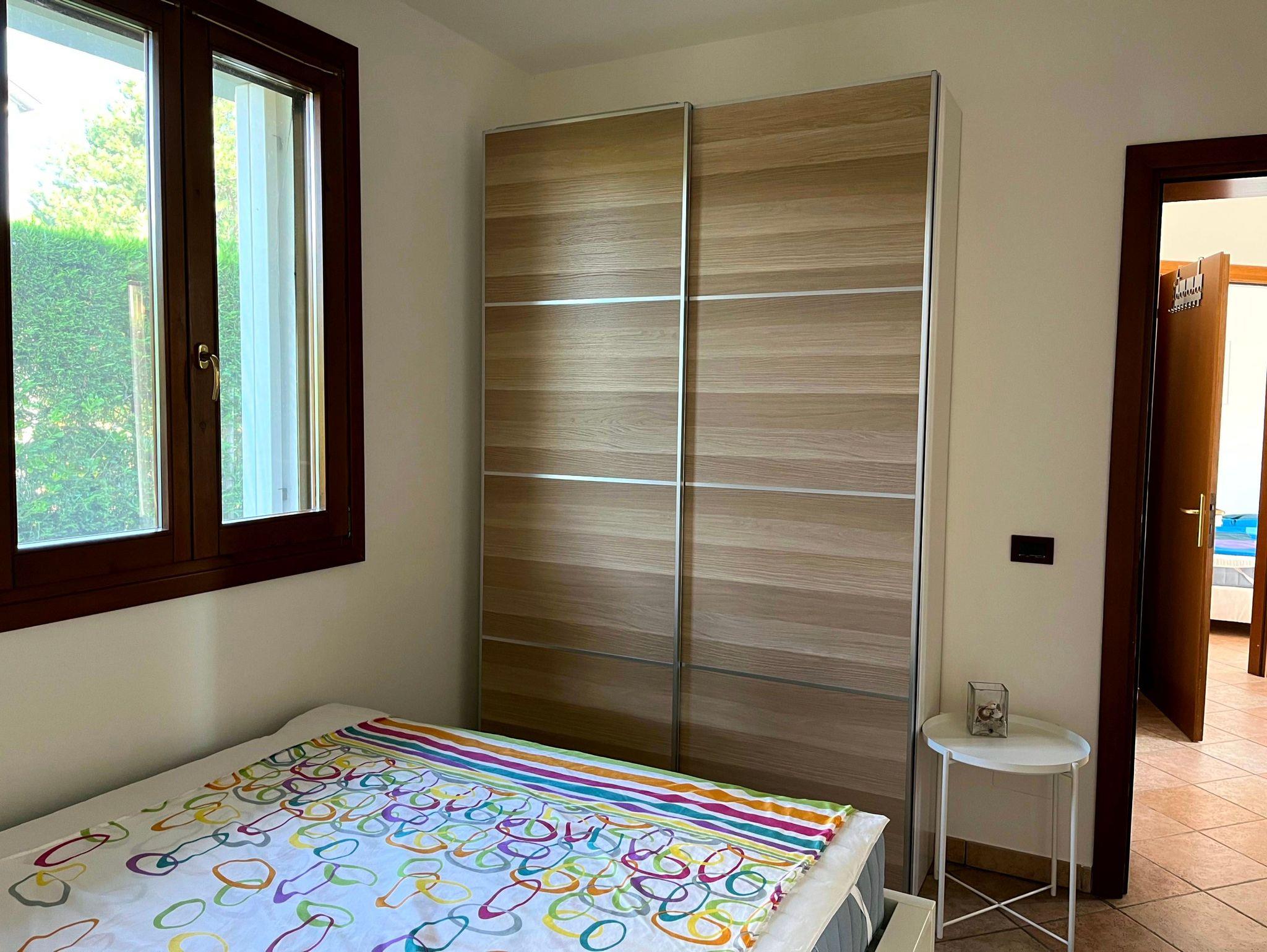 Ein Schlafzimmer mit Klimaanlage, 160 x 200 cm-Doppelbett und Schiebetüren-Schrank, Möglichkeit des Durchgangs zu Schlafzimmern