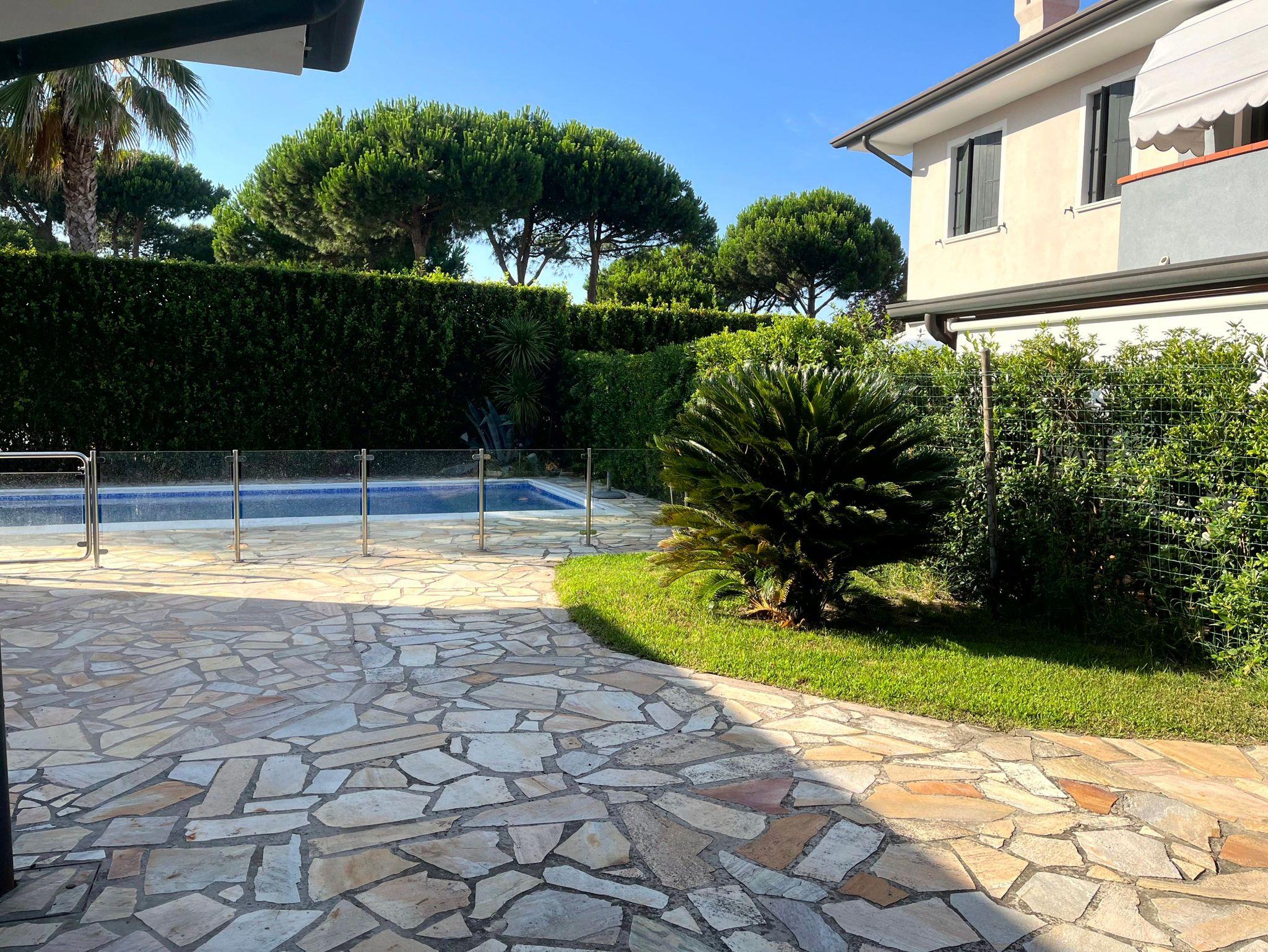 Via del Salice, Einzelhausvilla mit Pool für 10 bis 12 Personen, im ersten Inseldrittel in einer ruhigen Seitenstraße in Strandnähe , ca. 1,4 km zum Centro Sportivo, ca. 600 m zu den Tennisplätzen, ca. 500 m zum Reitsportzentrum, ca. 1,9 km zum Supermarkt