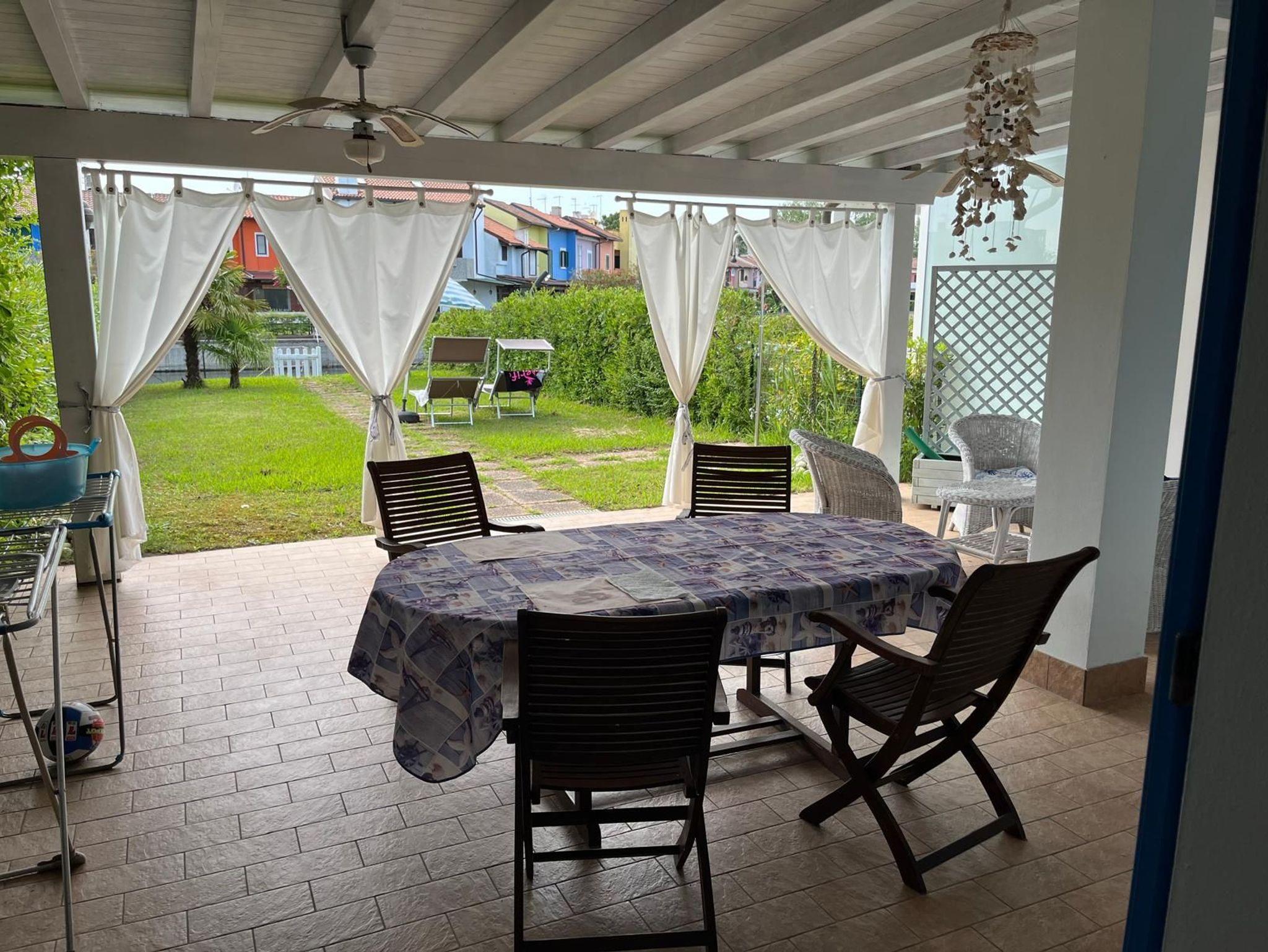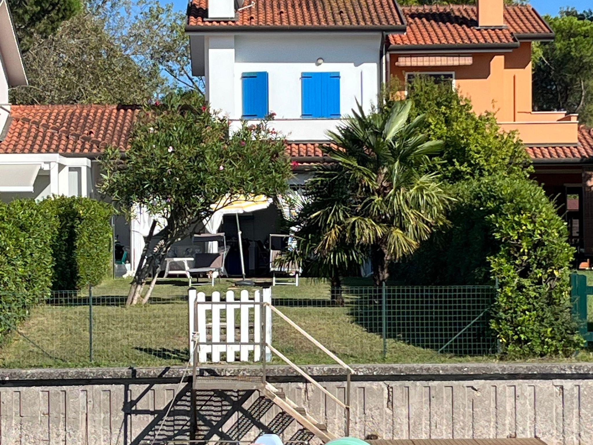 Schöner Garten zum Wasser mit Außengrill, Gartenmöbeln und Außendusche, zum Wasser hin mit einem Gartentor verschlossen