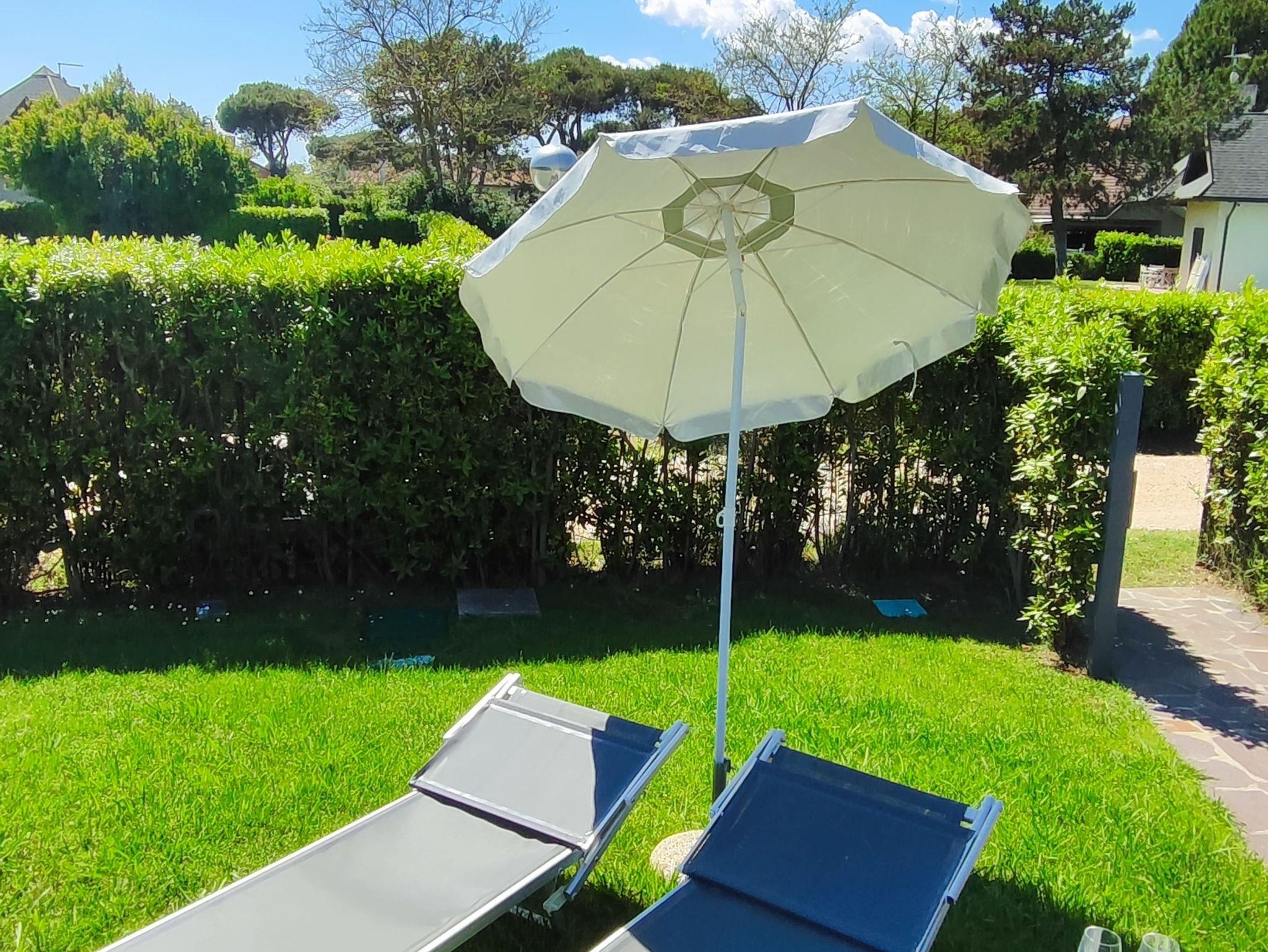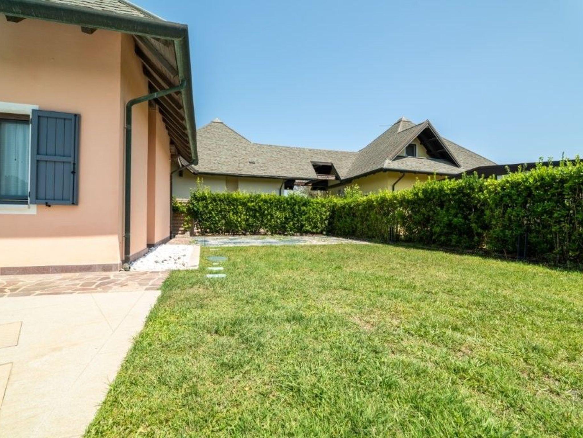 Ampio giardino recintato con due parcheggi interni e piscina privata.