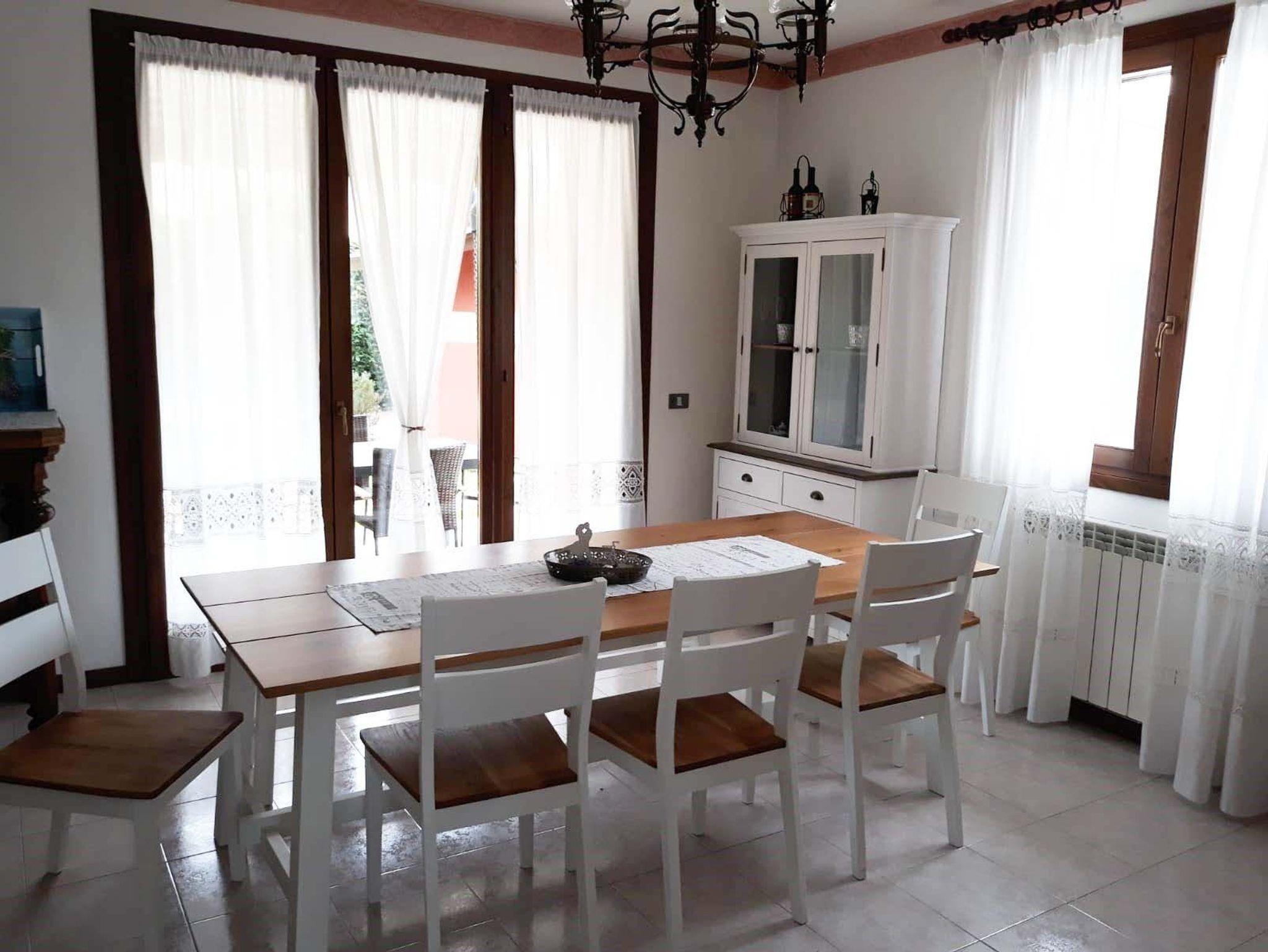 • Esszimmer mit 2,20 m langem Tisch und direktem Zugang zur Poolterasse (Süd/Ost)