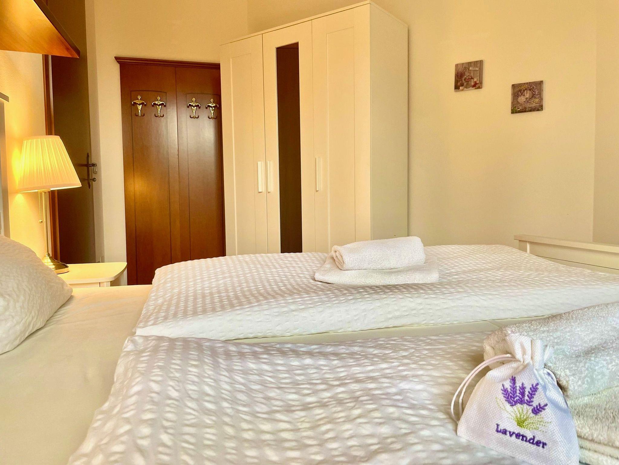 • 2 Schlafzimmer mit Doppelbetten und direktem Zugang zum Garten