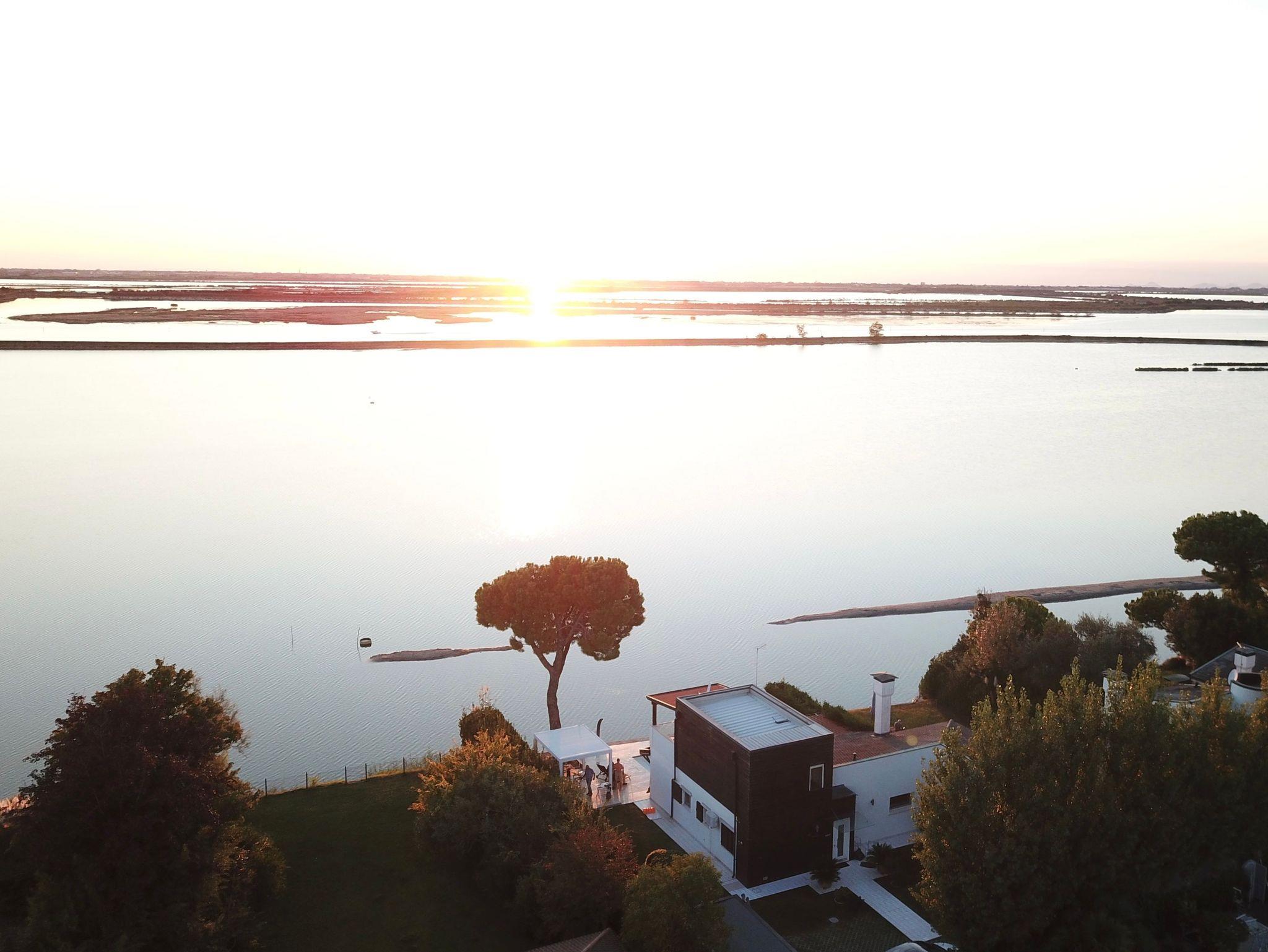 • Ein Schlafzimmer mit Doppelbett, große überdachte Terrasse mit romantischem Blick über die Lagune