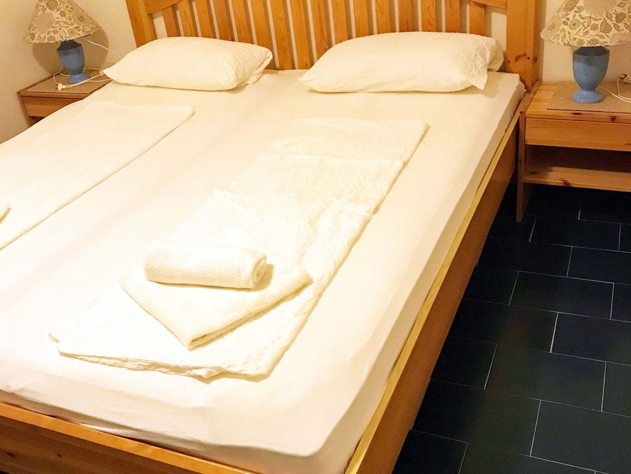 • Ein Schlafzimmer mit Doppelbett