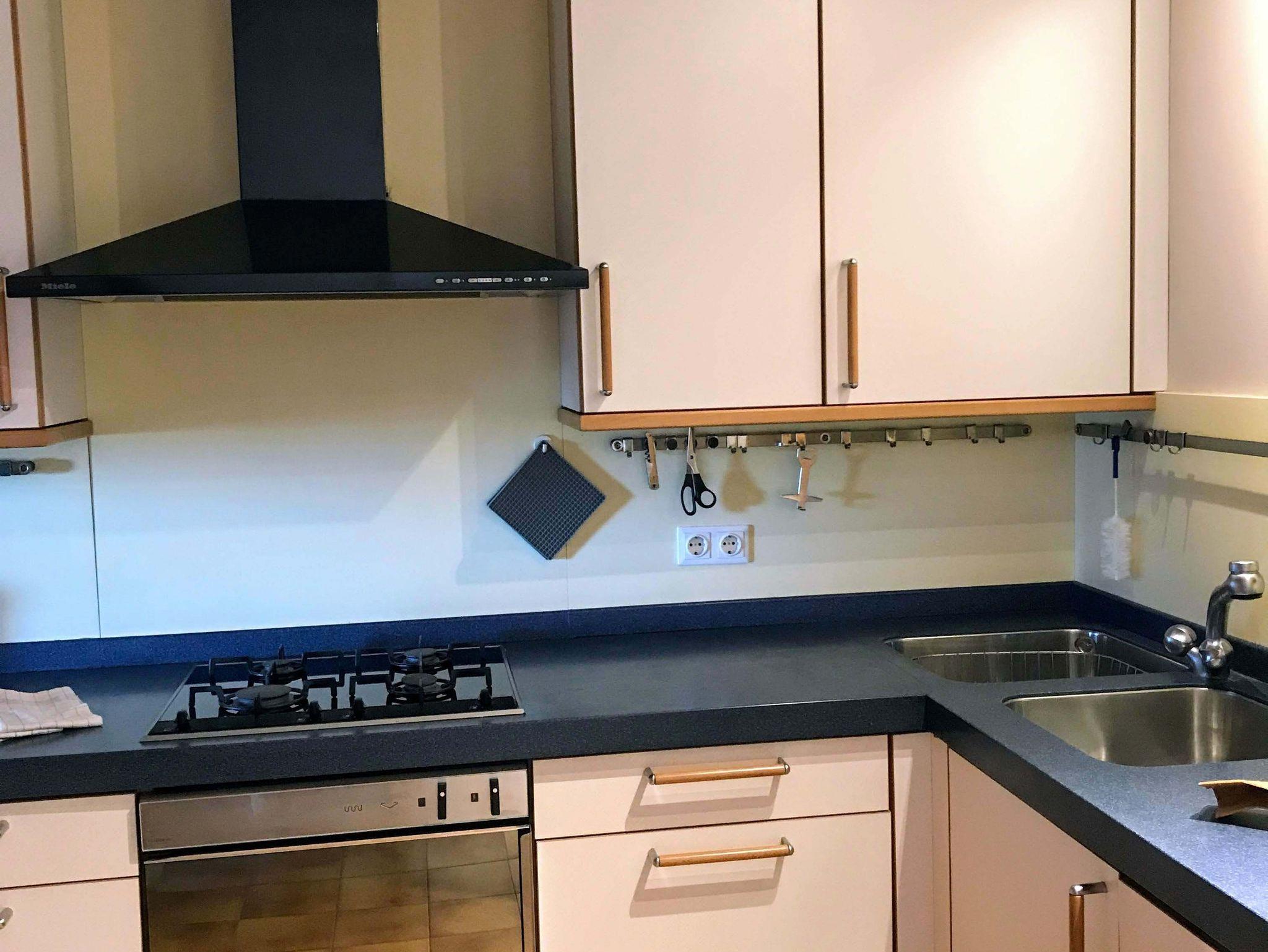 • Sehr gut ausgestattete Küche mit Spülmaschine, deutscher Kaffeemaschine, Backofen und großer Kühlgefrierkombination