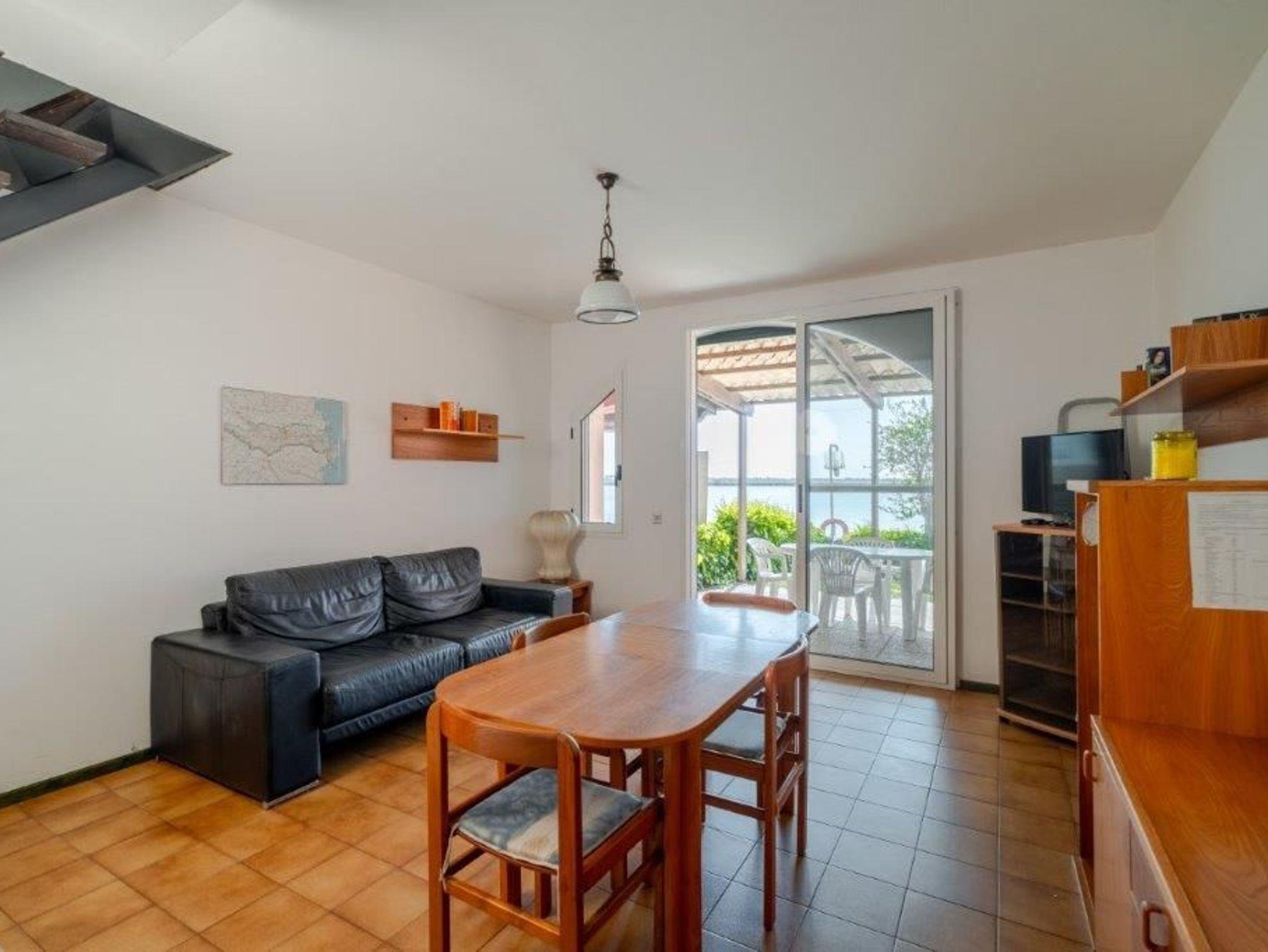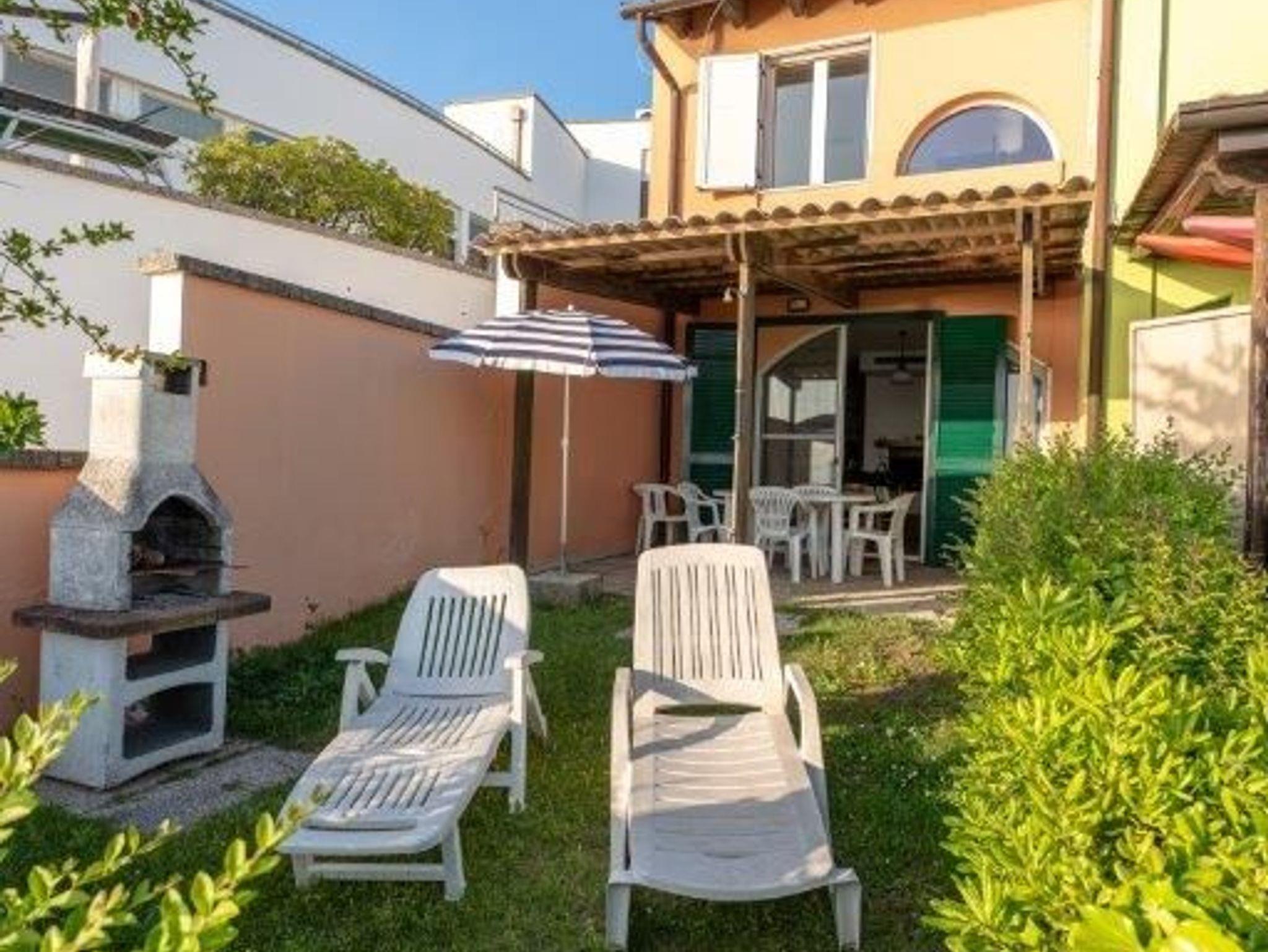 Gepflegter, geschlossener Garten mit Gartenmöbel und gemauertem Außengrill, direkt am Wasser