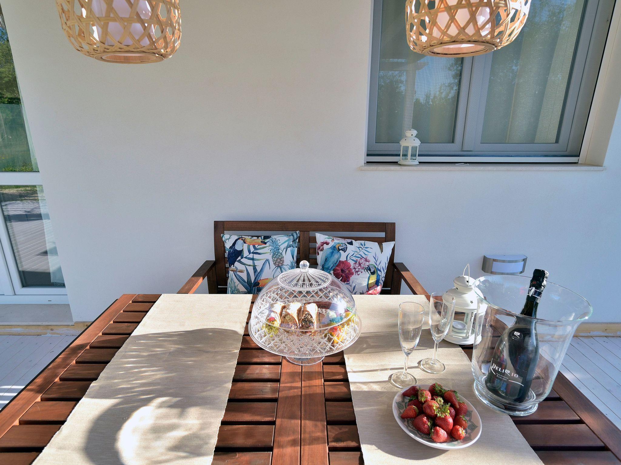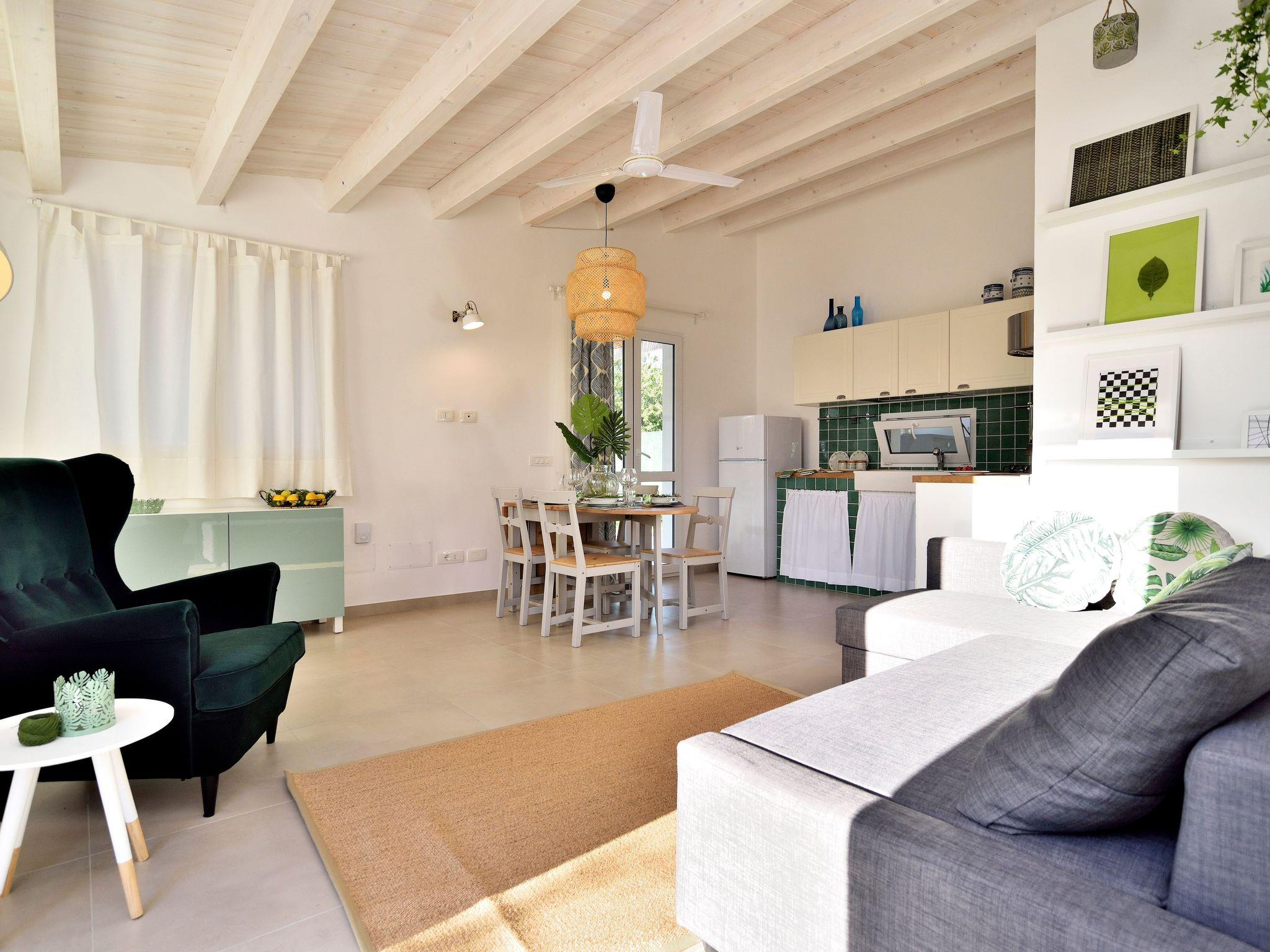 The interior of the villa is designed to provide superior comfort and a cosy ambience. Equipped with two bedrooms, two bathrooms, one indoor and one outdoor, it guarantees a comfortable stay for up to 4 persons. Each room is equipped with air conditioning, ensuring coolness and relaxation at any time of day. The spacious living room with sofa bed adds to the comfort of the villa, while the kitchen, fully equipped with modern appliances such as a dishwasher and electric coffee machine, invites guests to try their hand at preparing delicious dishes.