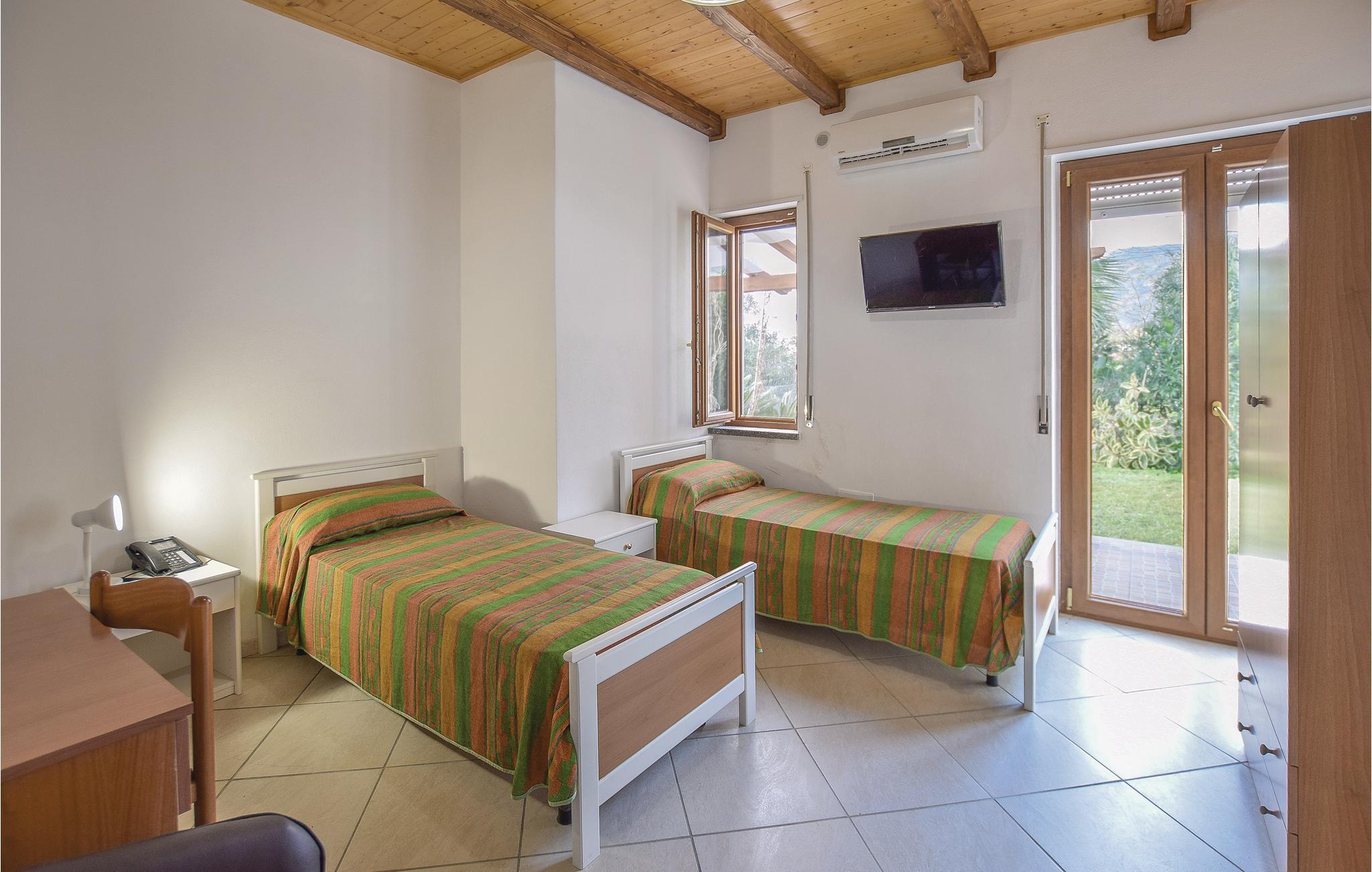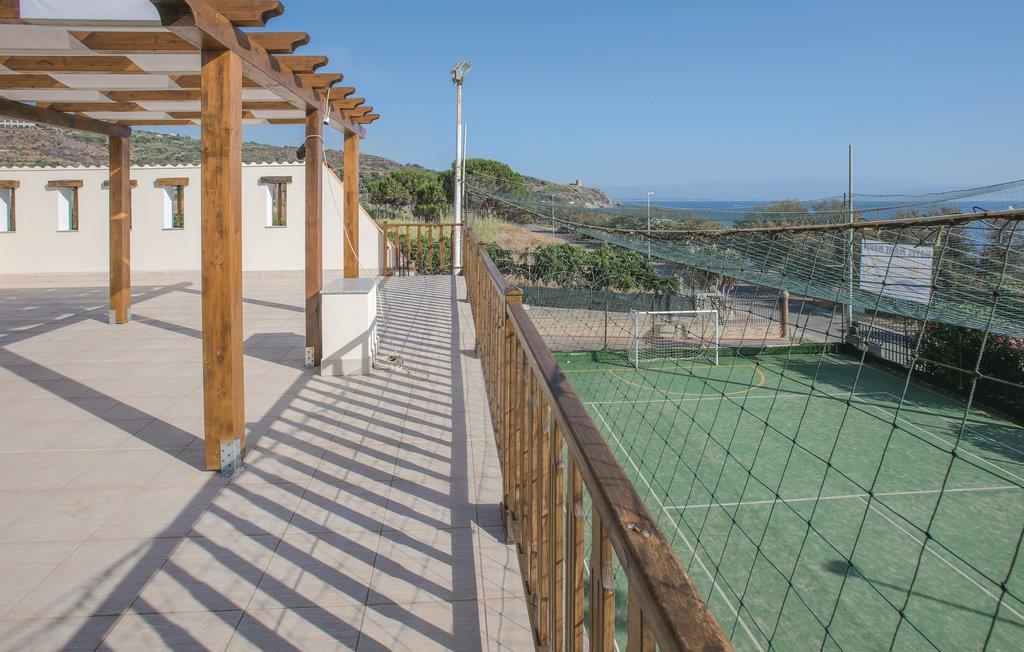 Omgivet af yppig grøn natur og i en have, kun 40 m fra havet og stranden, både med klipper og fint sand, ligger dette feriehus i Joppolo i Vibo Valentiargionen. Huset er lyst og hyggeligt indrettet og ligger i et privat ferieanlæg, med en fælles pool, en fodboldbane, tennisbane, legeplads, grillplads og en have fuld af blomster og planter. Feriehuset er i et plan med tre soveværelser, alle med eget badeværelse, en stor stue med køkken og spisebord, samt en skøn veranda, hvor I kan slappe af og spise dagens måltider. En udendørs trappe fører op til en terrasse på første sal, hvorfra der er udsigt over havet og de Æoliske øer på klare dage. Nær Joppolos historiske centrum, Nicotera (7 km), Tropea (15 km). I nærheden af barer, restauranter og supermarkeder der er åbne året rundt.