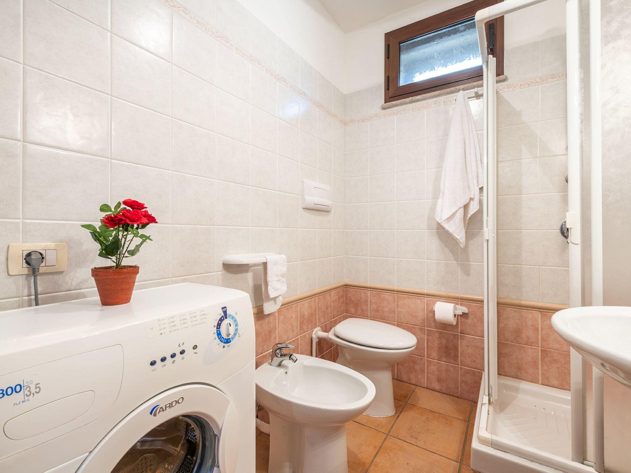 "Pompia 4", 3-room apartment 60 m2, on the ground floor. Practical furnishings: living/sleeping room with 1 sofabed, dining table and TV. Exit to the terrace. 1 room with 2 beds. 1 room with 1 double bed. Kitchenette (oven, 4 gas rings, freezer) with dining table. Shower/bidet/WC. Terrace roofed. Terrace furniture. View of the garden. Facilities: washing machine, children's high chair, baby cot for up to 2 year olds (extra). Internet (WiFi, free). Parking at the house. Please note: non-smoking house. 1 pet/ dog allowed. Private entrance. IT091085C2000Q5502
