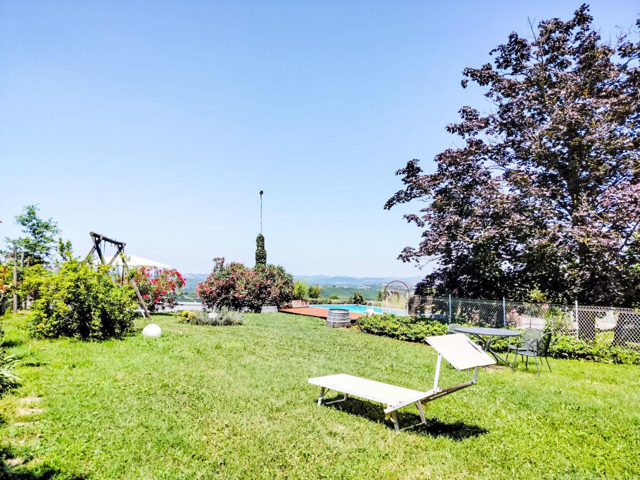 Very cosy on a vinyard "Ca' del Pozzo", surrounded by vineyards. 4 apartments in the residence. In the hamlet Pozzo 1.5 km from the centre of La Morra, 5 km from the centre of Barolo, 15 km from the centre of Alba. For shared use: property 500 m2 (fenced) with natural garden, meadow, swimming pool (above ground) (6 x 3 m, depth 140 cm, seasonal availability: 08.Jun. - 14.Sep.). Patio, terrace, barbecue (swing). In the house: washing machine (for shared use). Breakfast possible on request (extra). Roofed, parking at the house on the premises. Shop 1.5 km, bus stop "La Morra" 300 m, railway station "Alba" 15 km, outdoor swimming pool 5 km. Local sale of farm products.