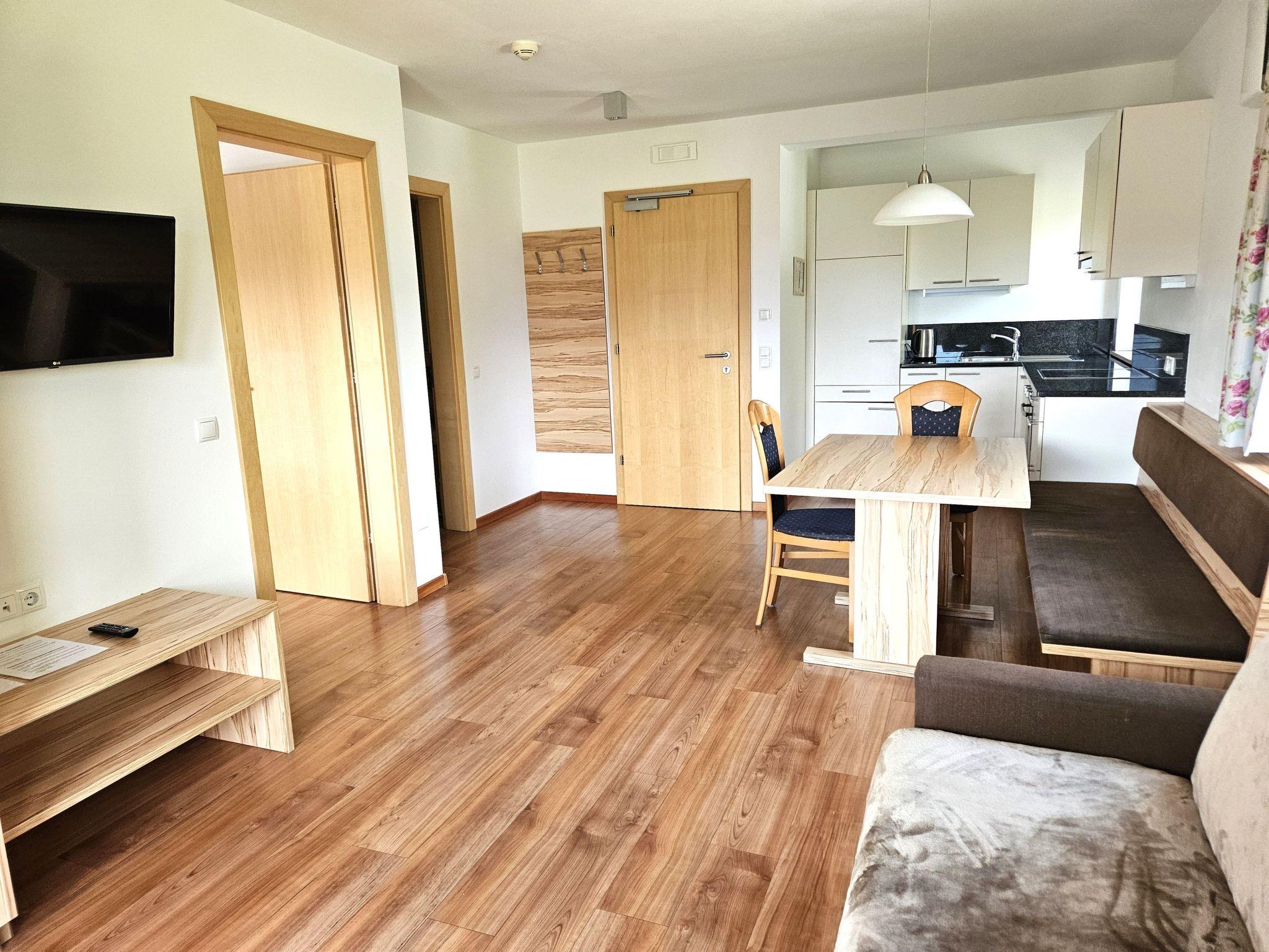 Our Panorama Apartments promise a comfortable stay for 2 to 4 people. Each holiday flat has a bedroom with a double bed and a living area with a pull-out double sofa bed, ideal for families or couples. The fully equipped kitchen with 4 ceramic hobs, extractor bonnet, TV, WLAN and a bathroom with shower/WC/bidet and hairdryer leave nothing to be desired. Not forgetting the balcony, which offers a breathtaking view over the mountains. Cosiness is ensured not only by the heating, but also by the included electricity costs.
