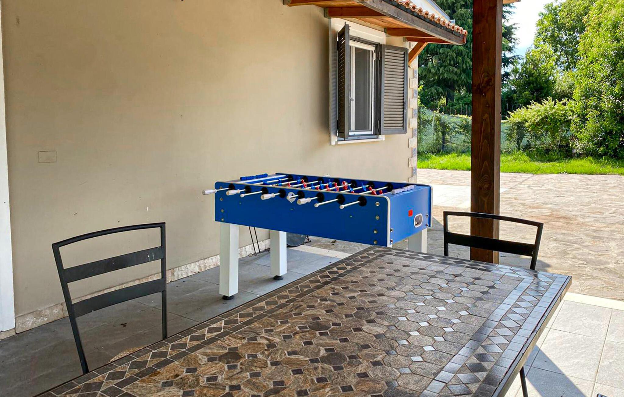 Tilbring en afslappende ferie med jeres familie i udkanten af Labico. Huset er udstyret med gode faciliteter og er funktionelt indrettet. Glæd jer til at slappe af i haven, hvor jeres børn og hunde har god plads til at rende rundt og lege. Når I skal dække op til dagens måltider kan I vælge en af de to terrasser - måske vil I helst have sol eller skygge. Udendørs står der også både en muret grill klar samt liggestole, hængekøje og en pool. Her kan I tilbringe en masse sjov tid som familie.