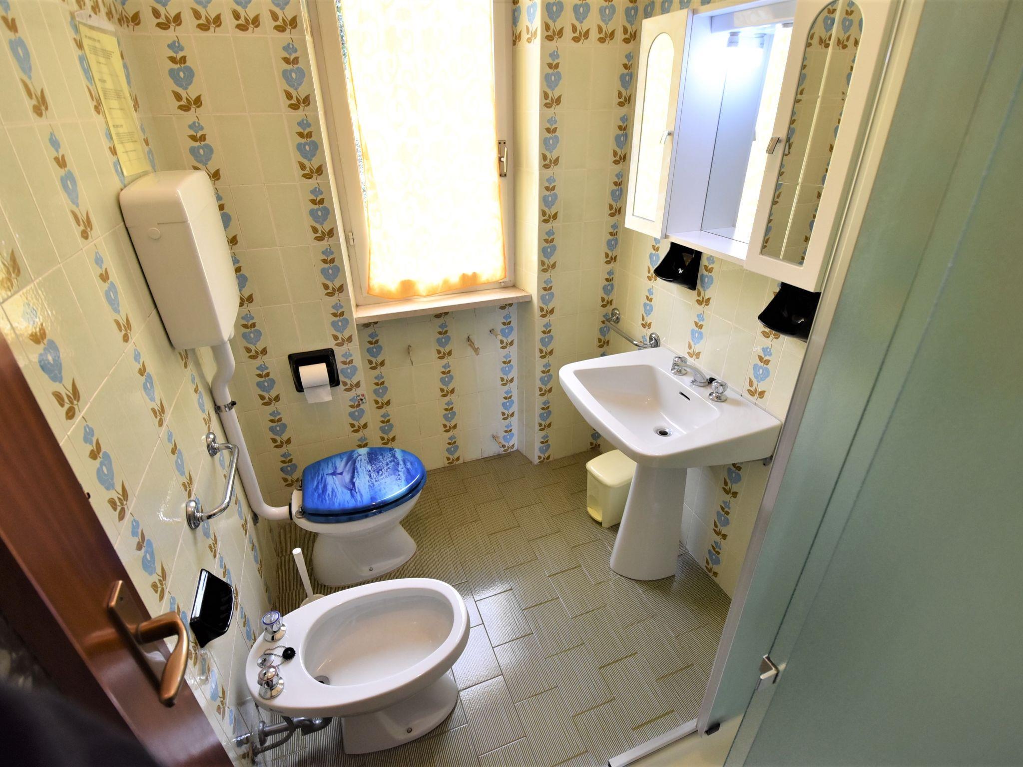 3-room apartment 70 m2, on the ground floor. Beautiful furnishings: living/sleeping room with 1 double sofabed (160 cm, length 180 cm), dining table and satellite TV. 2 double bedrooms. Kitchen (oven, 4 gas rings, freezer, electric coffee machine) with dining table. Shower/WC. No heating option. Terrace partly roofed, small garden. Terrace furniture, deck chairs (2). Facilities: children's high chair. Internet (WiFi, extra). Please note: non-smokers only. Maximum 1 pet/ dog allowed. Private entrance. IT017082B4RR5M634G