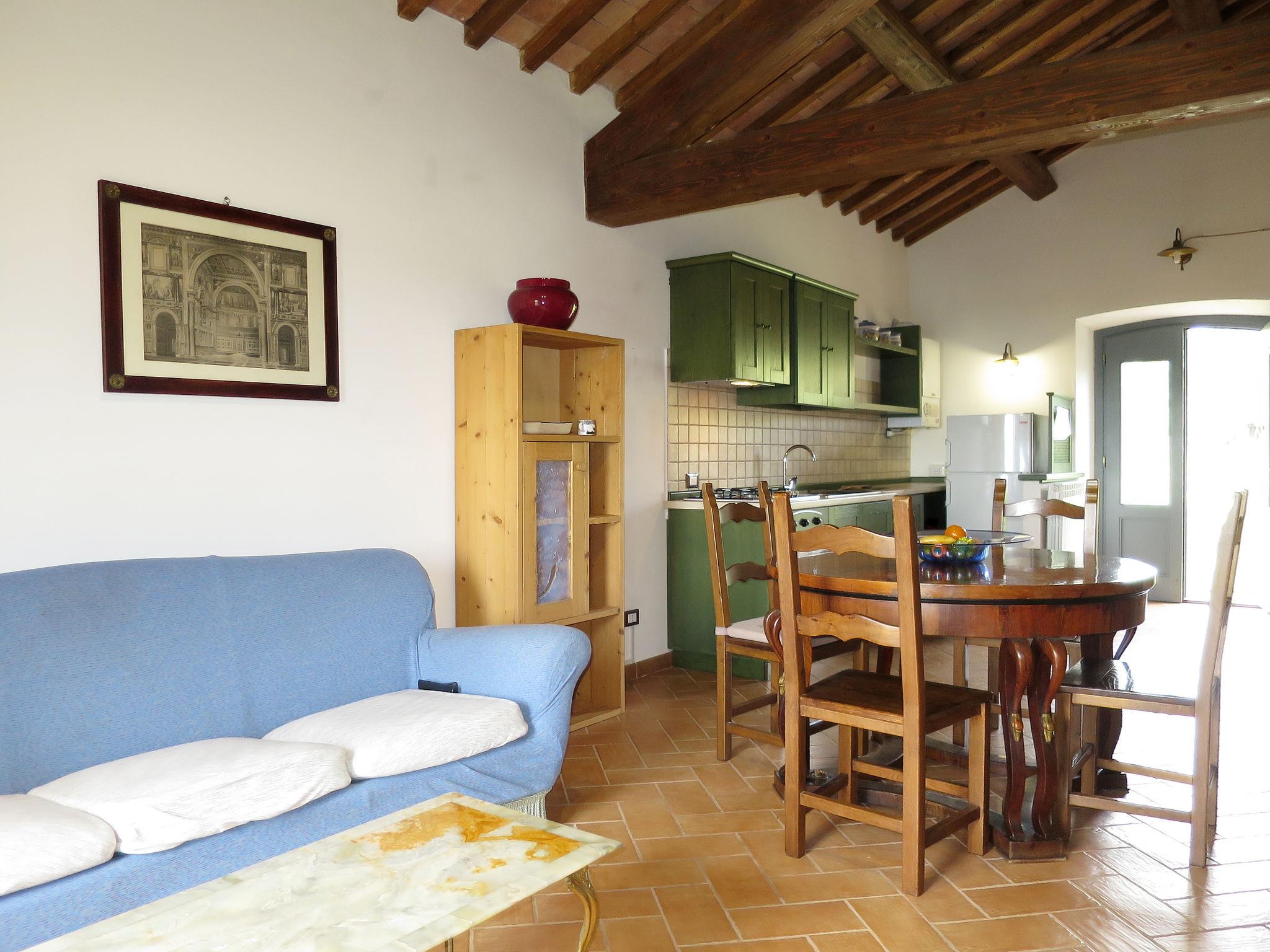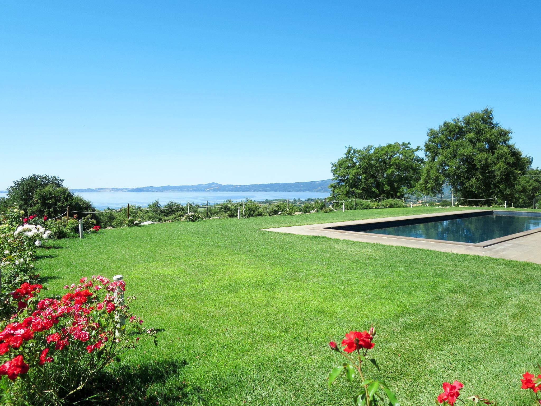 Agriturismo "Il Podere del Lago". 6 houses in the residence. 10 apartments in the residence. 4.5 km from the centre of Bolsena, 25 km from the centre of Orvieto, 100 km from the centre of Roma, 1.5 km from the lake. For shared use: property 3'500 m2, garden (not fenced) with lawn and trees, swimming pool fenced (22 x 5 m, depth 140 cm, seasonal availability: 16.May. - 04.Oct.). Table tennis, garden furniture, children's playground. In the house: reception, table football, washing machine (for shared use, extra). 600 m long motor access (via unmade road). Shop 4.5 km, supermarket 5.5 km, bus stop 2 km, grass beach "Lago di Bolsena" 1.5 km. Golf course (9 hole) 16.5 km. Please note: the owner lives on the same property. Obligation to wear bathing caps.
