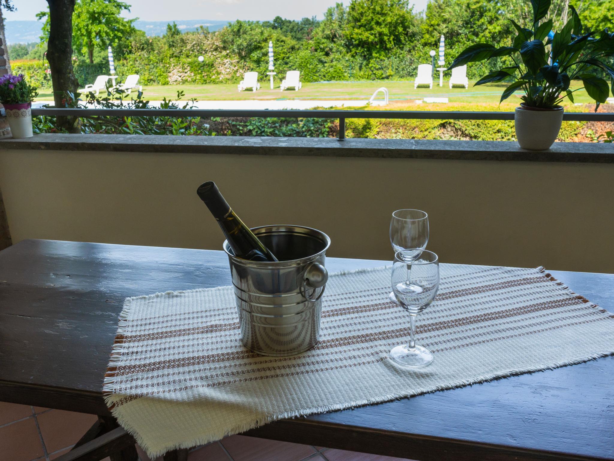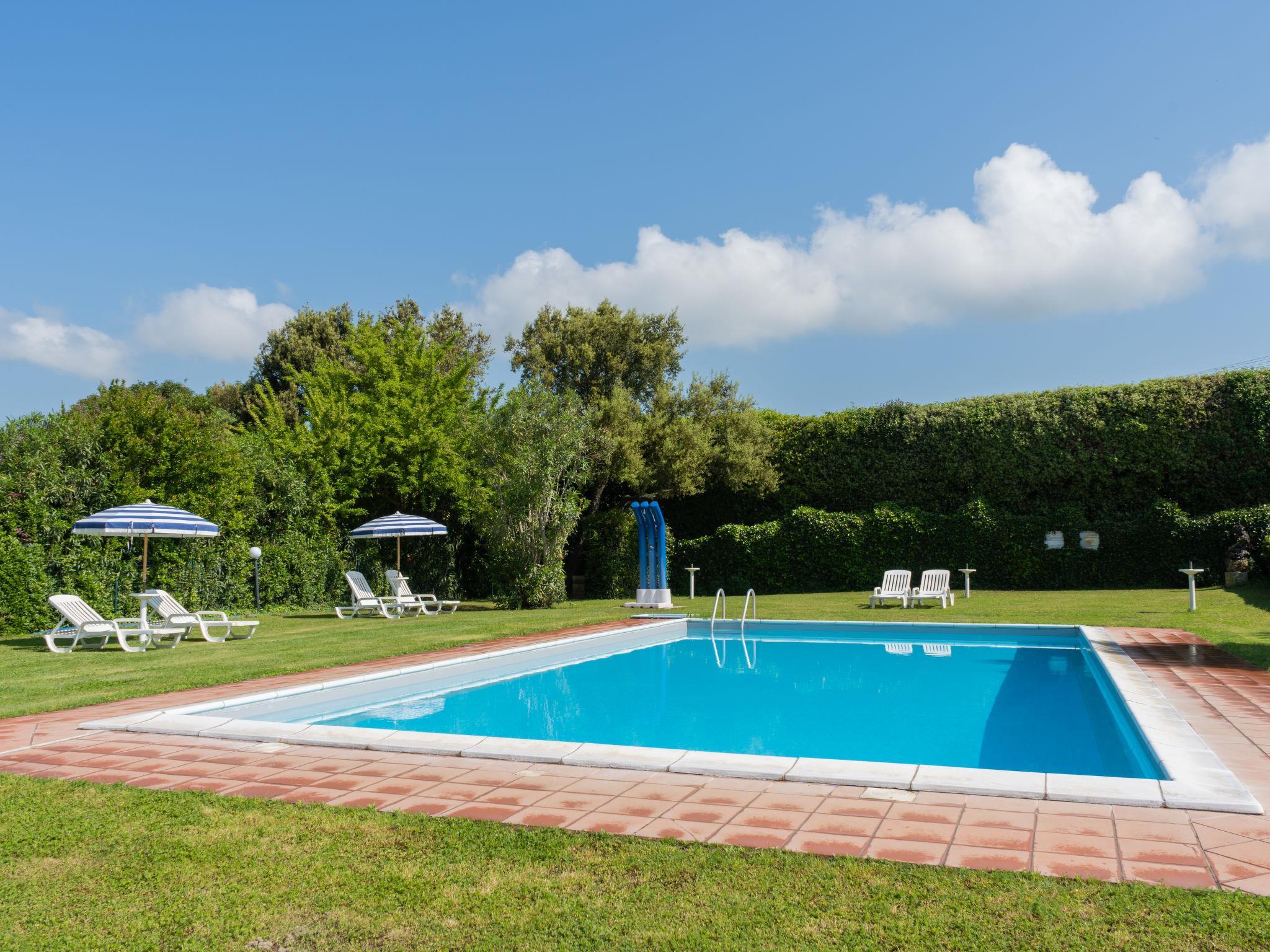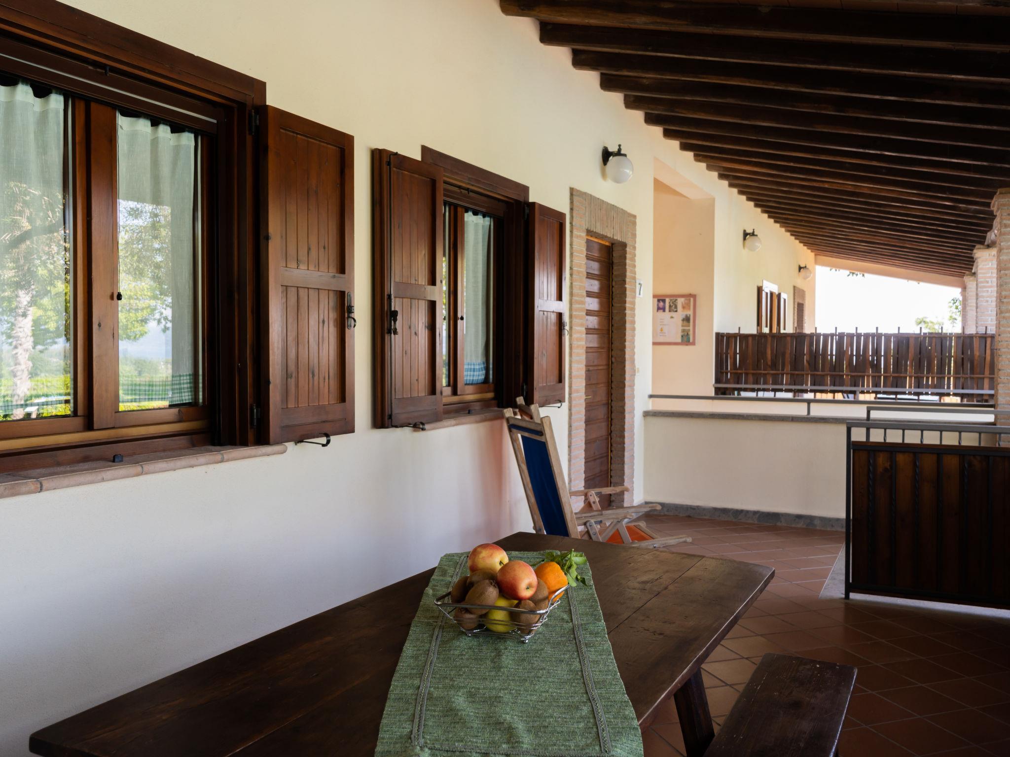Country house "Dolce Vita". 4 houses in the residence. 9 apartments in the residence. 3 km from the centre of Bolsena, 25 km from the centre of Orvieto, 100 km from the centre of Roma, 900 m from the lake, in the countryside. For shared use: property 5'000 m2 with lawn and trees, orchard, lawn for sunbathing, swimming pool (12 x 6 m, depth 120 - 150 cm, seasonal availability: 16.May. - 10.Oct.). Outdoor shower, barbecue, children's playground. In the house: washing machine (for shared use). Roofed, parking on the premises. Shop 3 km, supermarket 4 km, bus stop 800 m, sandy beach "Lago di Bolsena" 900 m. Golf course (9 hole) 15 km. Nearby attractions: Orvieto 35 km, Viterbo 35 km. Well-known lakes can easily be reached: Bolsena 900 m. Local sale of farm products. Please note: Loading and unloading of baggage is possible at the holiday house. The owner lives on the same property. Motorway 24 km from the property. Airfield 35 km from the property. Additional accommodations can be booked.