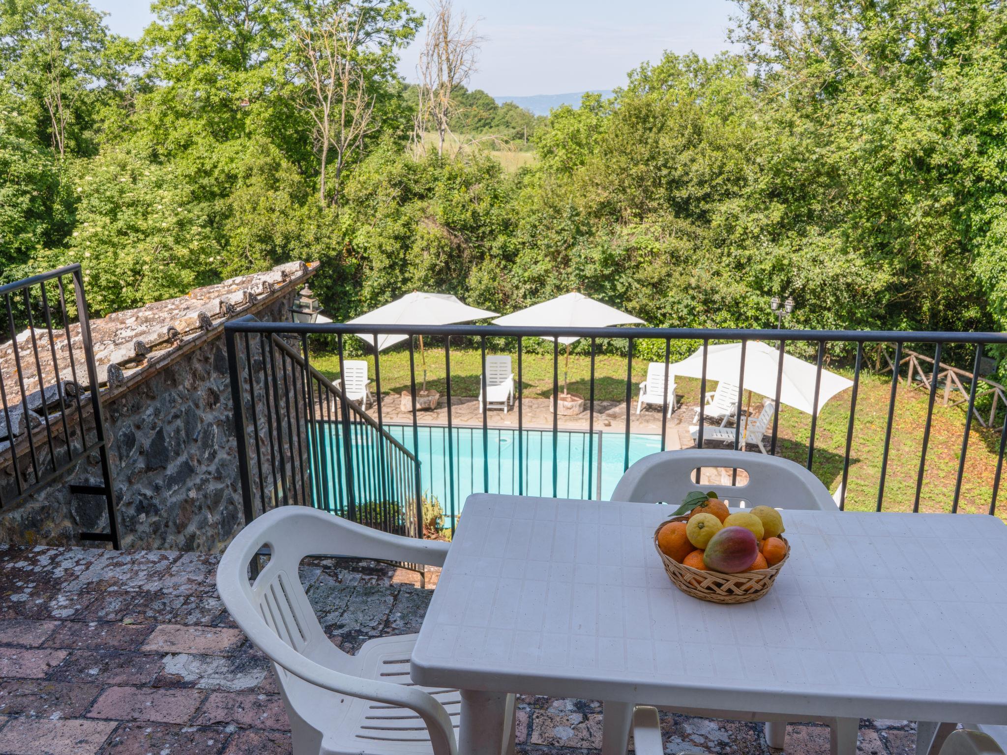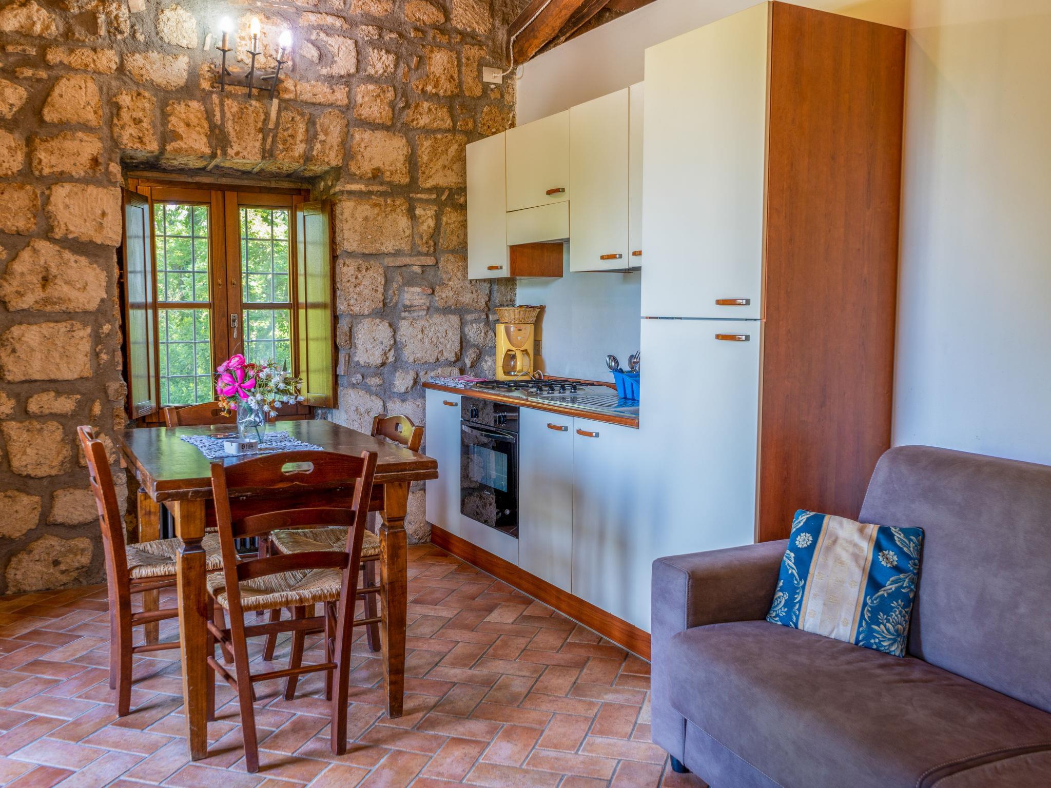 Country house "La Capraccia". 7 apartments in the residence. 10 km from the centre of Bolsena, 3 km from the centre of Bagnoregio, 100 km from the centre of Roma, 11 km from the lake, in the countryside. For shared use: property 20 ha, well-kept garden with lawn and trees, swimming pool (10 x 5 m, depth 120 - 150 cm, seasonal availability: 16.May. - 26.Sep. pool opening hours: 09:00-19:00). Outdoor shower, barbecue. In the house: washing machine (for shared use). 200 m long motor access (via unmade road). Parking on the premises. Shop 3 km, supermarket 3 km, bus stop 3 km, sandy beach "Lago di Bolsena" 12 km. Golf course (9 hole) 18 km. Please note: Additional accommodations can be booked.