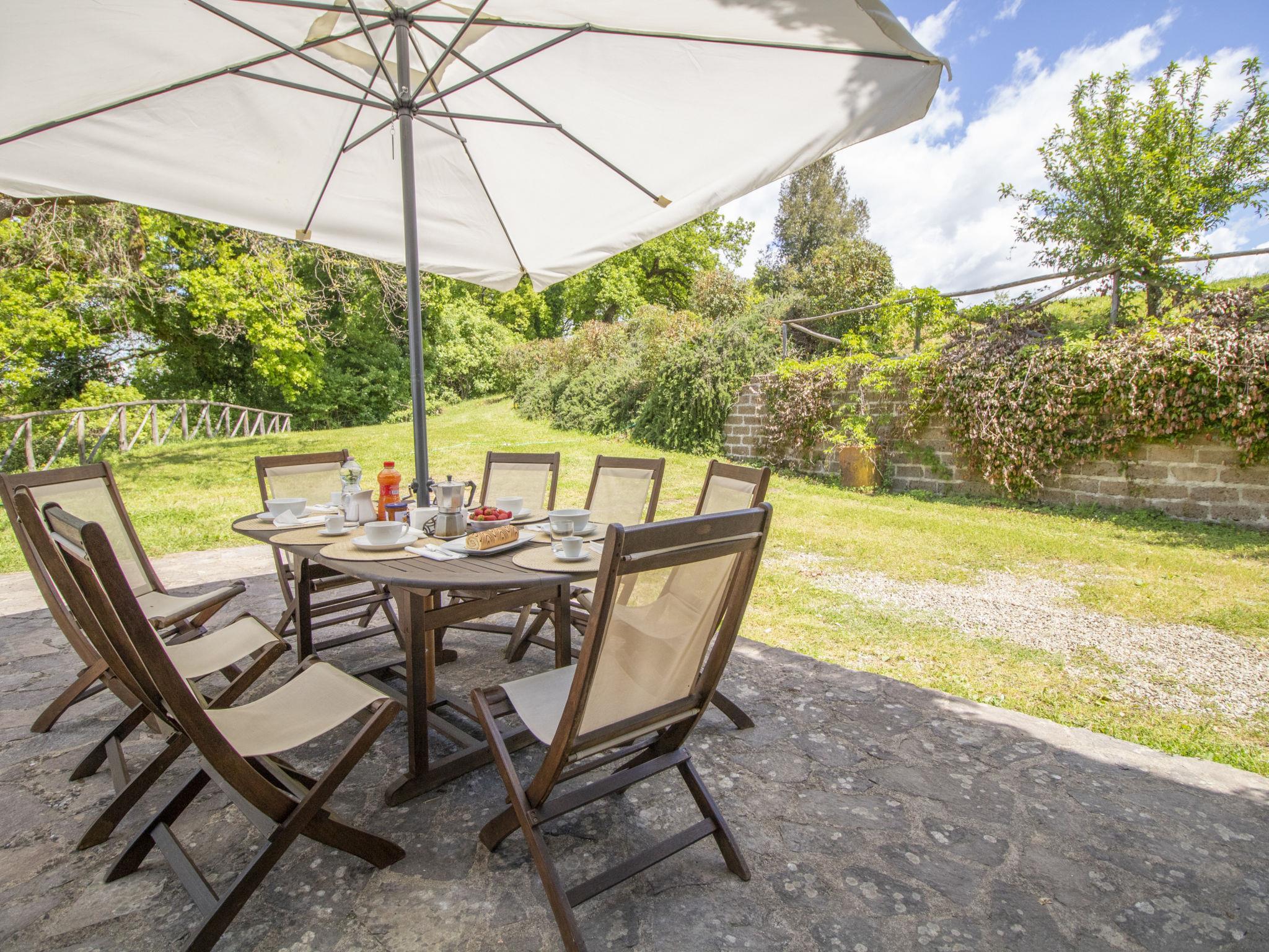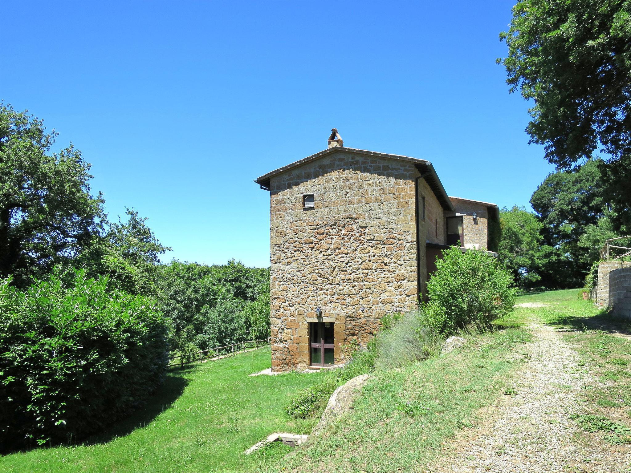 Rustic, comfortable country house "Casale Vitello", detached, surrounded by trees and fields. 5 km from the centre of Acquapendente, 24 km from the centre of Bolsena, 30 km from the centre of Orvieto, in a secluded position on a slope, 20 km from the lake, in the countryside. Private: property 120 ha (fenced) with trees, meadow, orchard, swimming pool (12 x 6 m, depth 100 - 250 cm, seasonal availability: 16.May. - 24.Oct.) with internal staircase. Garden furniture, barbecue, pool maintenance by the owner/gardener. 900 m long motor access (via unmade road). Parking on the premises. Shop 5 km, supermarket 5 km, bus stop 4.3 km, sandy beach "Pescia Romana" 60 km, thermal baths "Sorano" 12 km, bathing lake "Bolsena" 17 km. Golf course (9 hole) 13 km. Nearby attractions: San Casciano Dei Bagni 25 km, Pitigliano 23 km, Civita Di Bagnoregio 35 km, Bagno Vignoni 45 km, Pienza 50 km, Castiglion D'orcia 50 km. The owner does not accept any youth groups. In Winter the house can be booked only for max 12 peoples because two rooms on the ground floor are not heated.