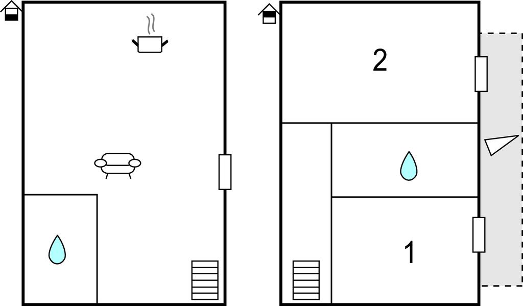 Opholdsstue/køkken - 2 Sovepladser. (Sofa, madras eller lignende).