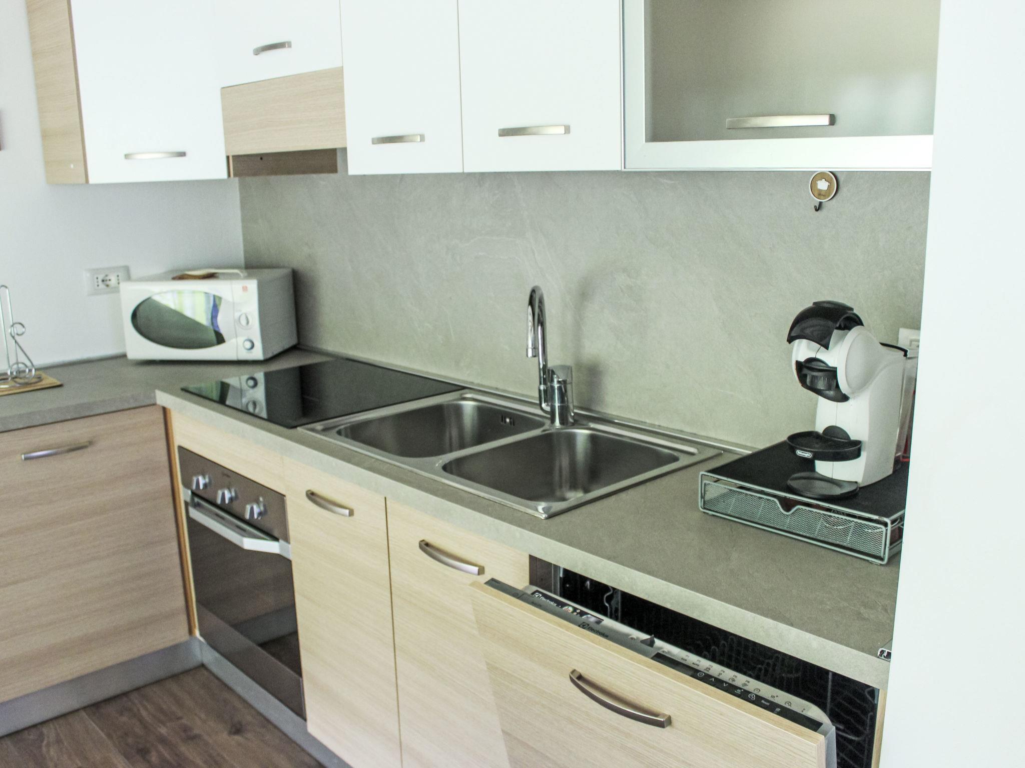 "Appartamenti Lilia n°6", 3-room apartment 100 m2 on 2 levels on 1st floor. Stylish furnishings: living/sleeping room with dining table and TV. Exit to the balcony. 1 room with 1 double bed and TV. 1 room with 2 beds. Open kitchen (oven, dishwasher, 4 induction hot plates, kettle, microwave, freezer, electric coffee machine). 2 showers/bidet/WC. Underfloor heating. Upper floor: (steep stair) open gallery with sloping ceilings with rooflight with 2 beds. Balcony. Balcony furniture. Beautiful view of the mountains and the swimming pool. Facilities: washing machine, children's high chair, baby cot, hair dryer. Internet (WiFi, free). Please note: non-smokers only. Maximum 2 pets/ dogs allowed. Smoke alarm, fire extinguisher. IT022229C2L8QSKY79