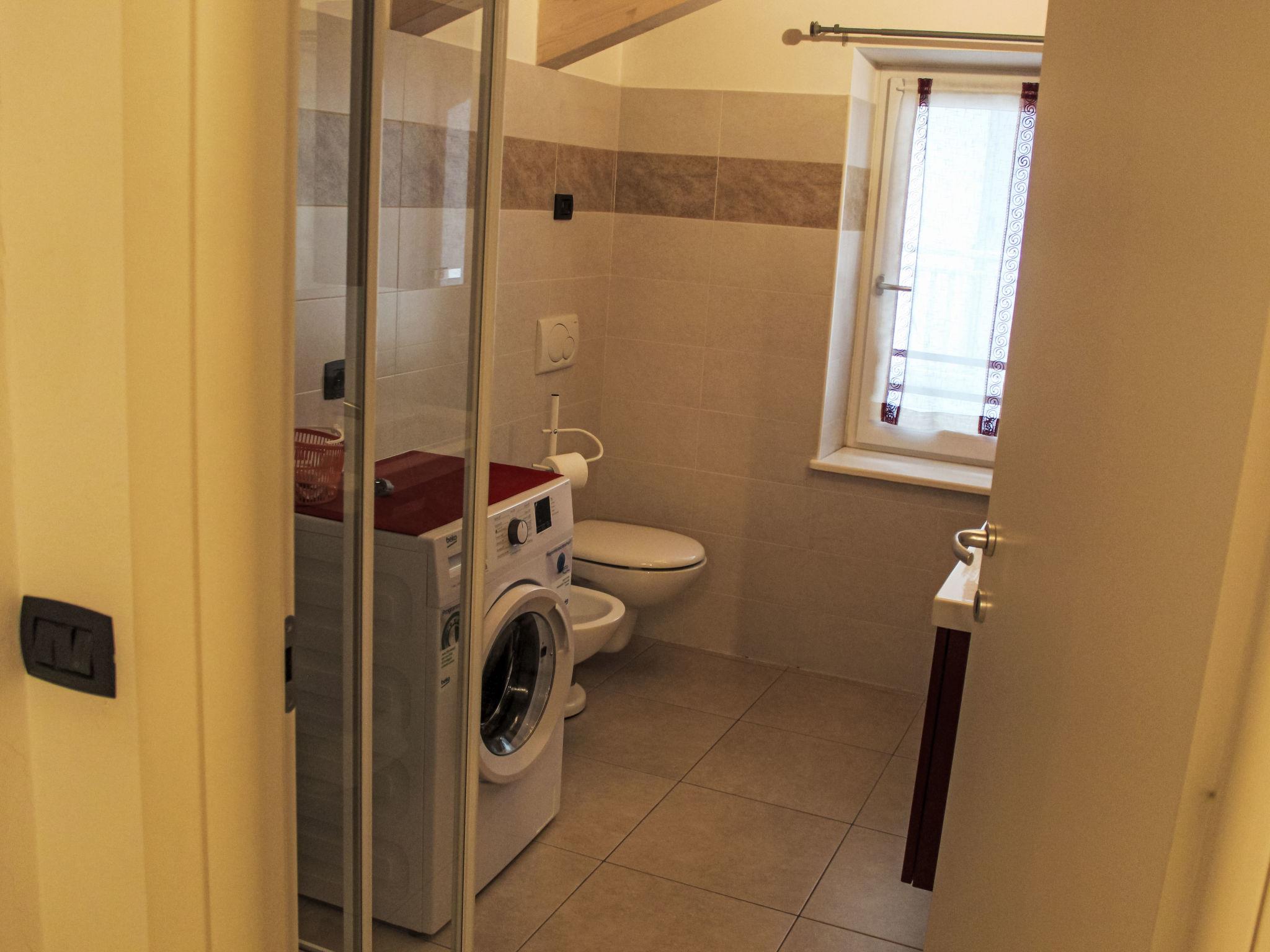 "Appartamenti Lilia n°4", 3-room apartment 70 m2 on 1st floor. Stylish furnishings: living/dining room with sloping ceilings with dining table and TV. With sloping ceilings, 1 room with 1 bed and 1 x 2 bunk beds. With sloping ceilings, 1 room with 1 double bed. Open kitchen (oven, dishwasher, Gas stove, 4 gas rings, kettle, microwave, freezer, electric coffee machine). Shower/bidet/WC. Underfloor heating. Balcony. Balcony furniture. Beautiful view of the mountains and the garden. Facilities: washing machine, children's high chair, baby cot, hair dryer. Internet (WiFi, free). Please note: non-smokers only. Maximum 2 pets/ dogs allowed. Smoke alarm, fire extinguisher. Bed layout is flexible. There are more sleeping options available than the maximum number of people allowed which may, however, not be exceeded. IT022229C24HGBK5S9
