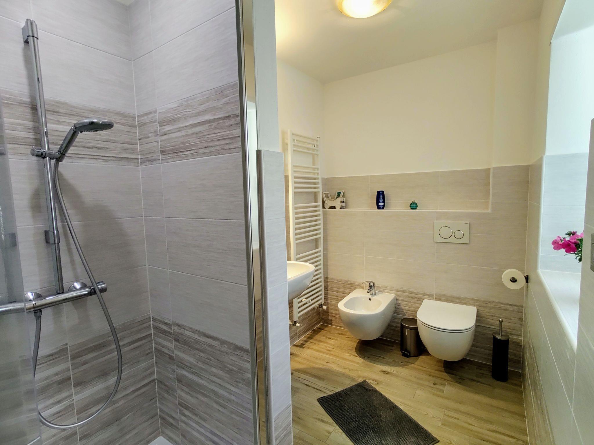 "Nonni", 4-room apartment 57 m2, on the ground floor, south facing position. Renovated in 2018, comfortable and modern furnishings: living/dining room with dining table and satellite TV. Exit to the terrace. 1 room with 1 french bed (160 cm). Exit to the garden. 1 room with 1 bed and 1 pull-out bed. 1 room with 1 bed. Open kitchen (oven, dishwasher, 4 induction hot plates, toaster, kettle, freezer, electric coffee machine). Shower/WC, sep. WC. Gas heating. Terrace, garden, lawn. Terrace furniture, deck chairs (4). Facilities: children's high chair, baby cot. Internet (WiFi, free). Parking at the house. Please note: non-smokers only. Private entrance. IT014046C2RCC5J4SS