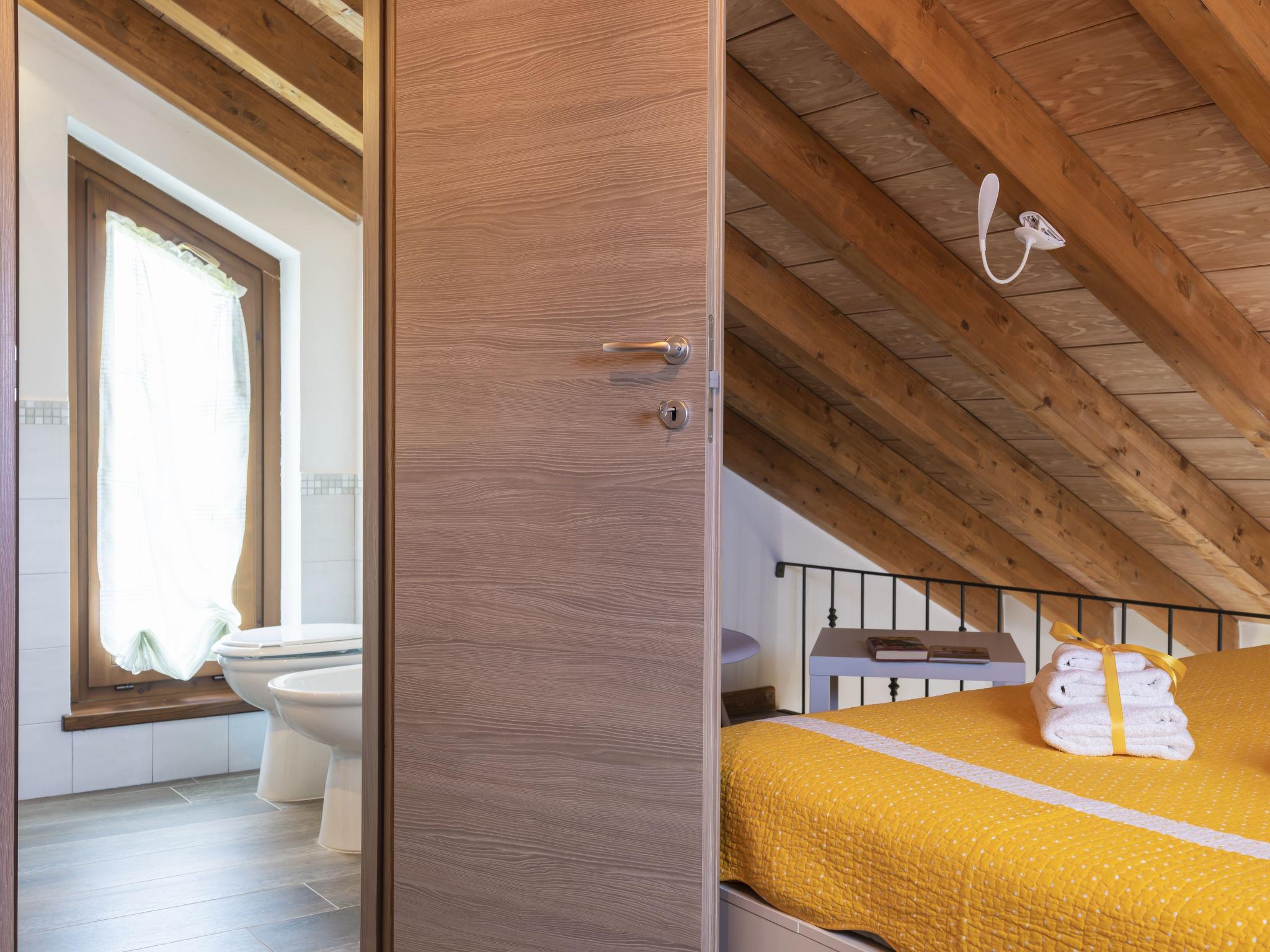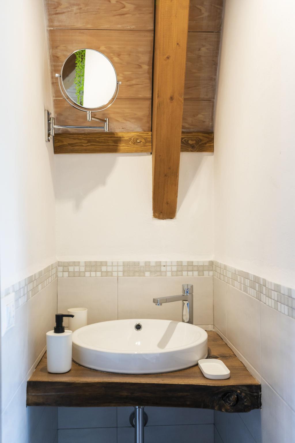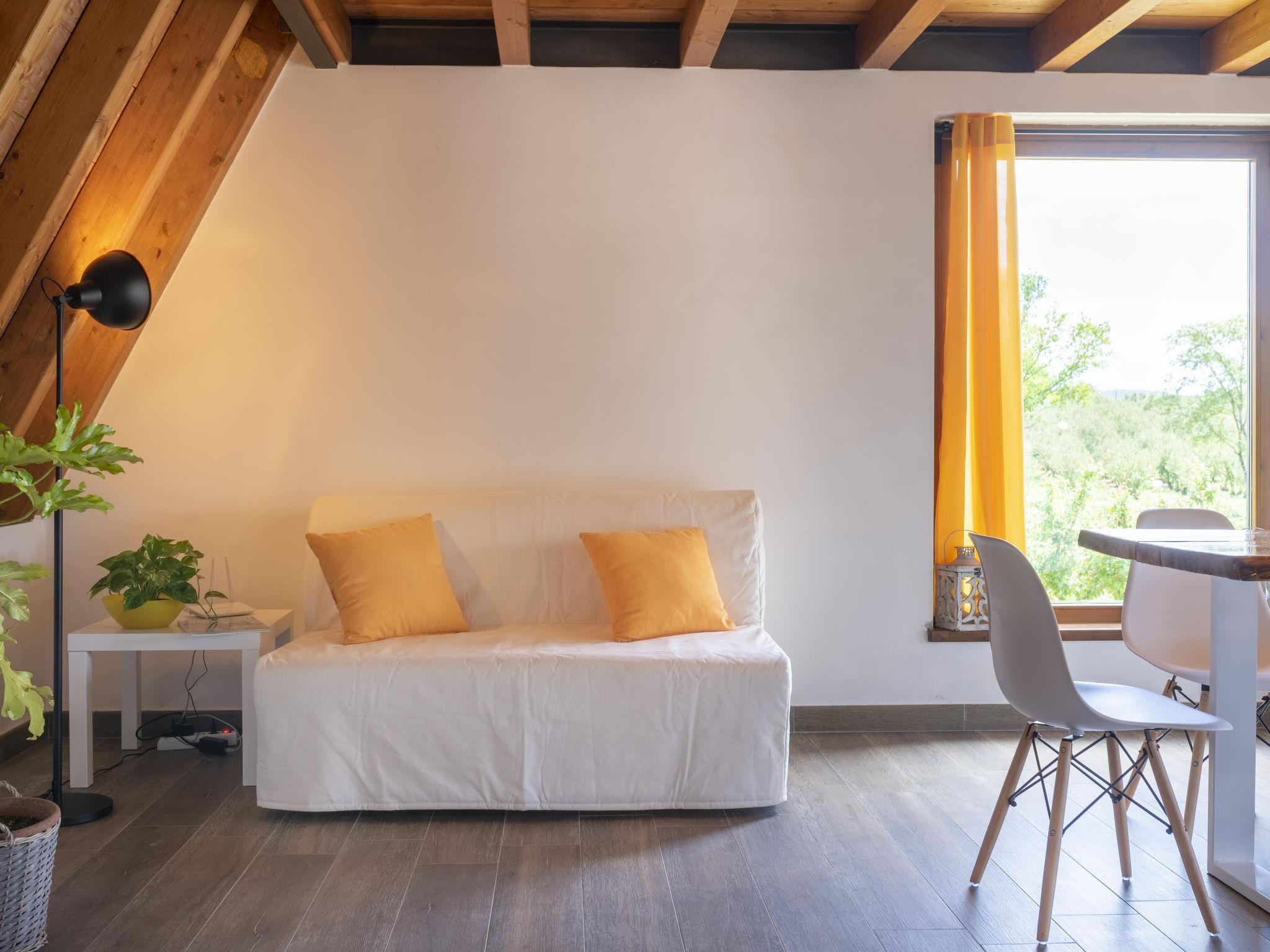 2-room chalet 60 m2 on 2 levels, on the upper ground floor. Modern and stylish furnishings: open living/dining room with 1 double sofabed and TV (flat screen). Exit to the terrace. Open kitchen (oven, dishwasher, 4 gas rings, toaster, freezer, electric coffee machine). Exit to the terrace. Shower/WC. Electric heating, air-conditioning. Upper floor: open gallery with sloping ceilings with 1 double bed (140 cm). Shower/bidet/WC. Terrace 45 m2. Terrace furniture. Beautiful, of the countryside. Facilities: Internet (WiFi). IT056049B5B0XKDC8M